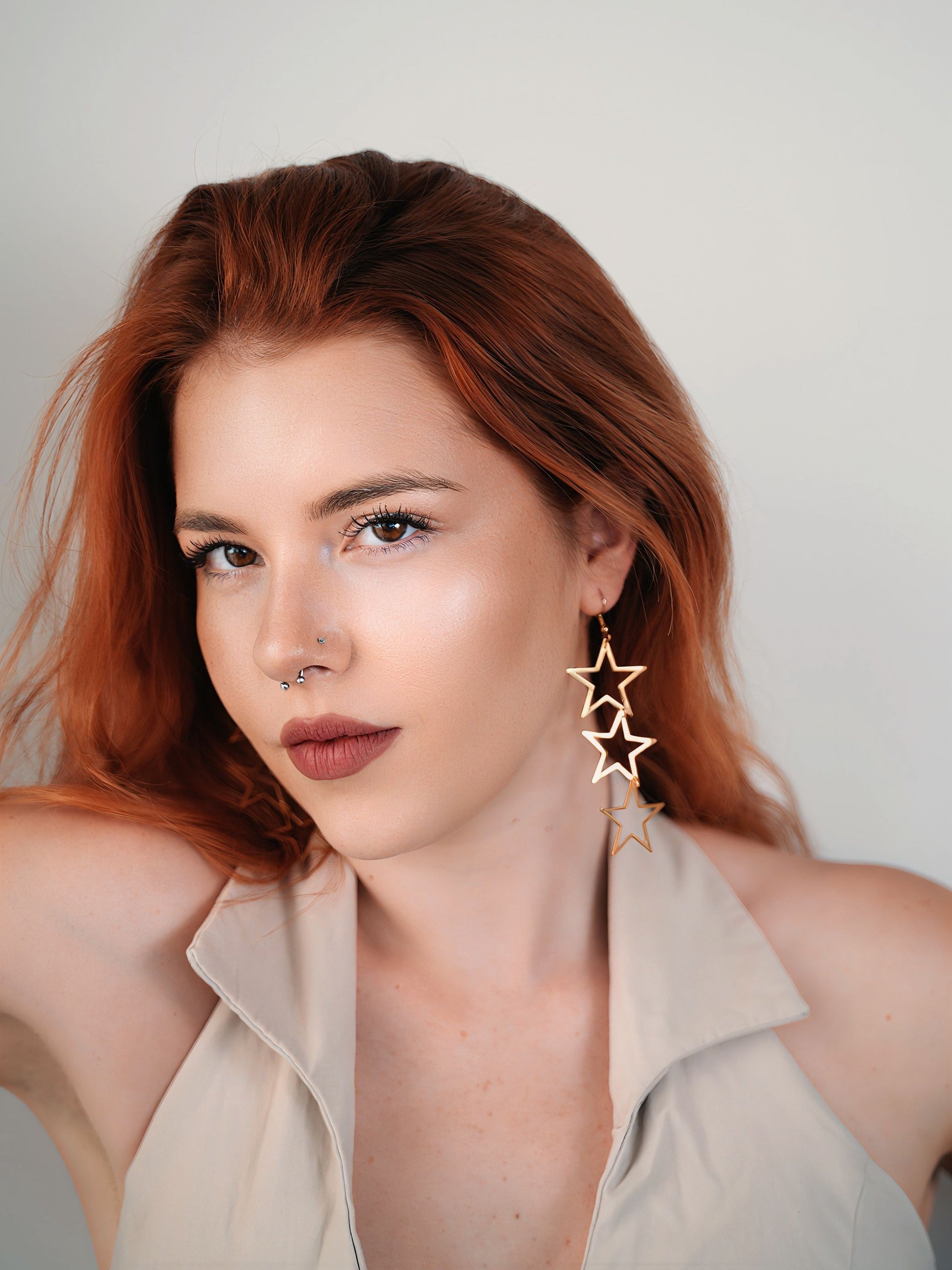 Pendientes con tres estrellas, fabricados en acero inoxidable hipoalergénico, resistente y duradero.