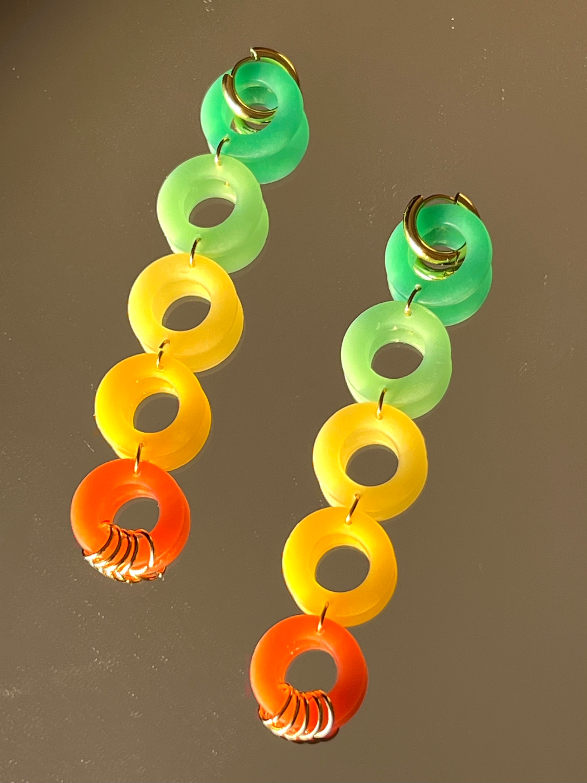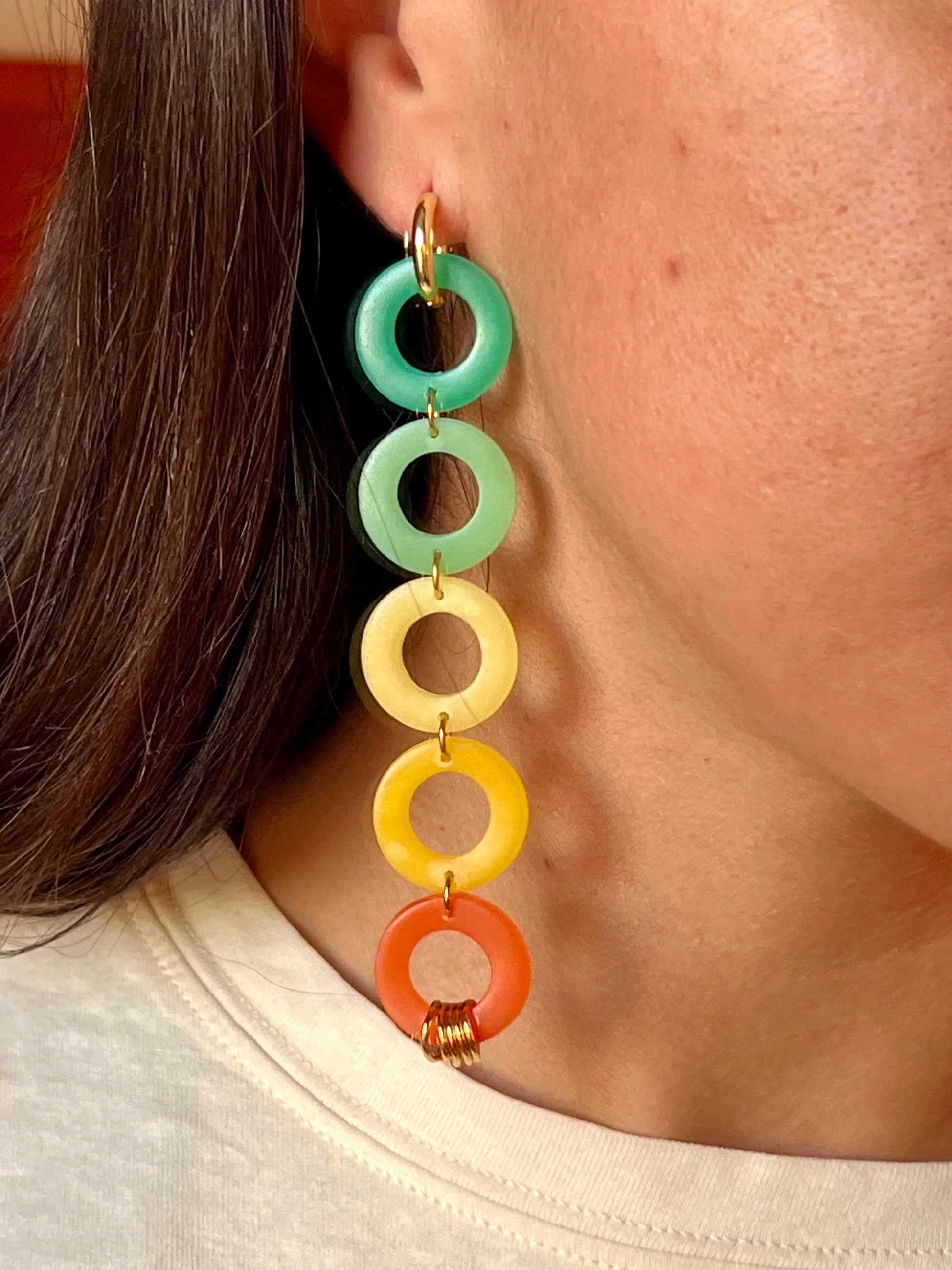Pendientes hechos a mano de arcilla polimérica, y acero inoxidable hipoalergénico.