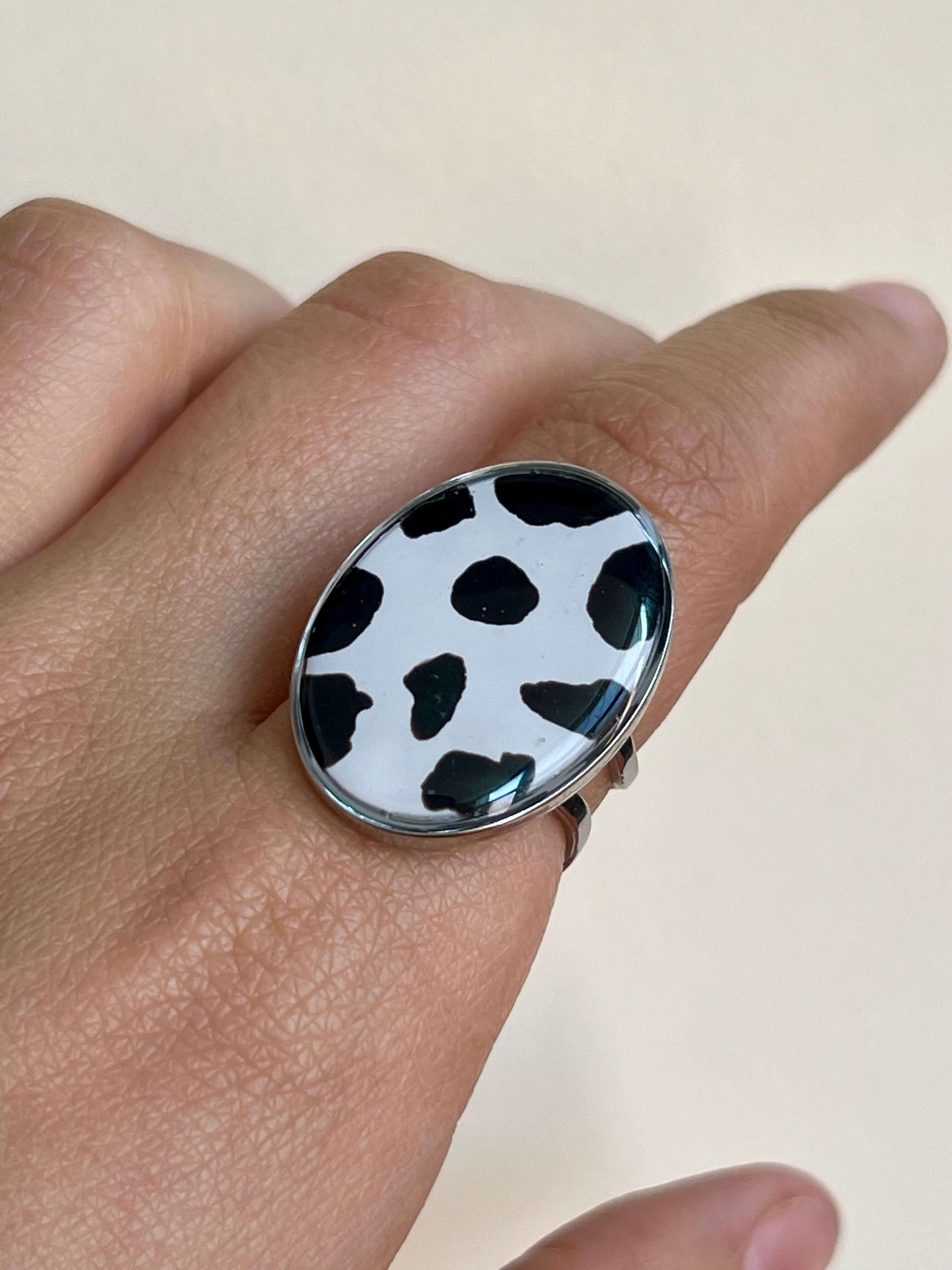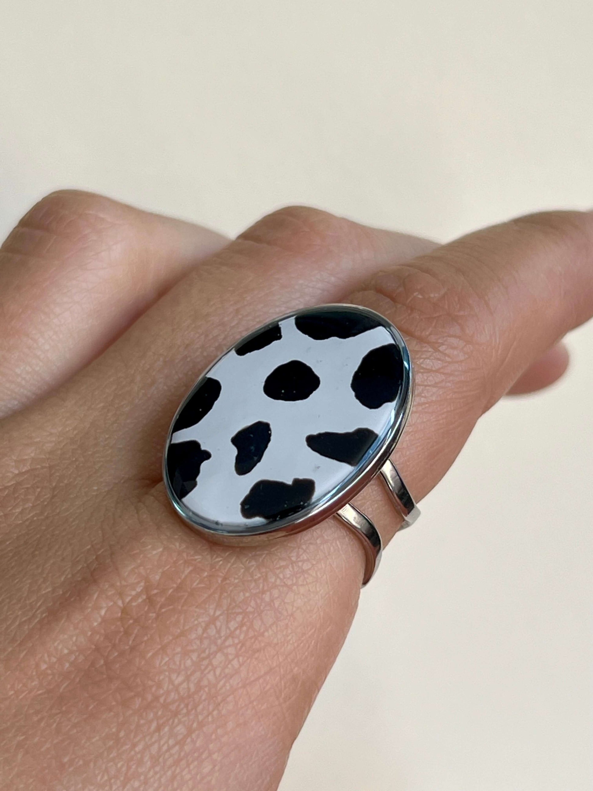 Anillo ajustable hecho a mano con arcilla polimérica y acero inoxidable.