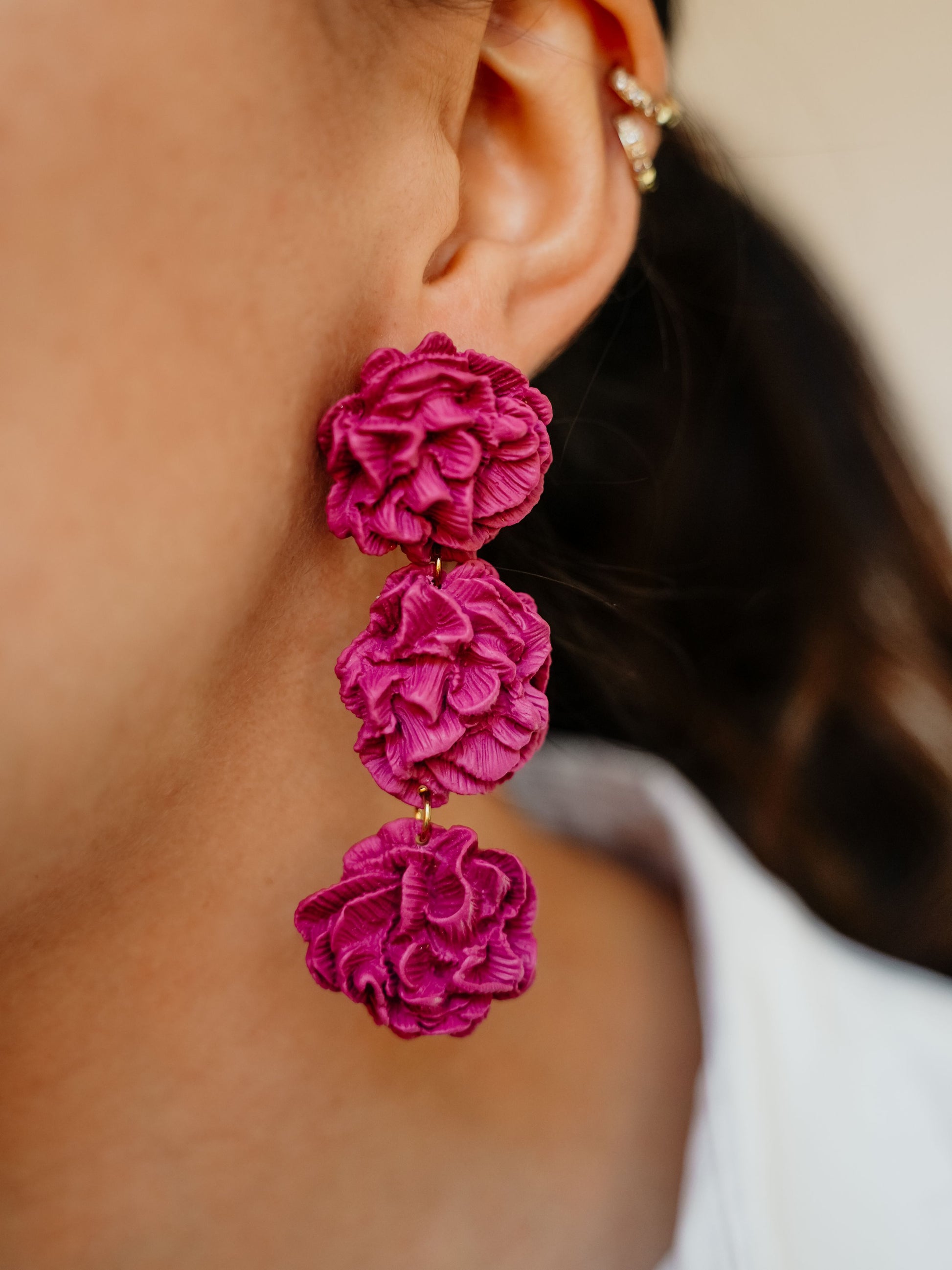 Pendientes hechos a mano de arcilla polimérica y acero inoxidable hipoalergénico.