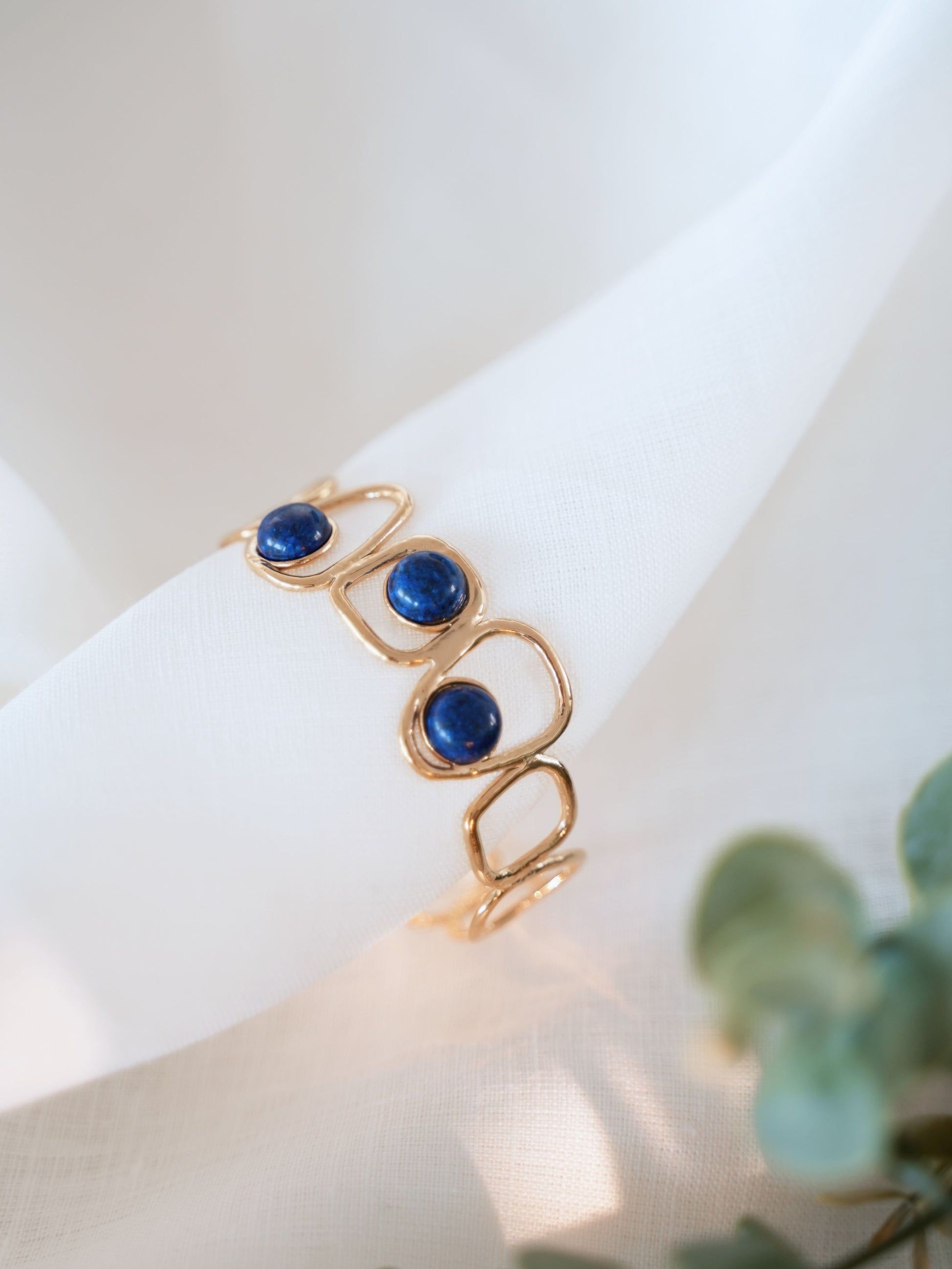 Brazalete ajustable fabricado en acero inoxidable hipoalergénico.