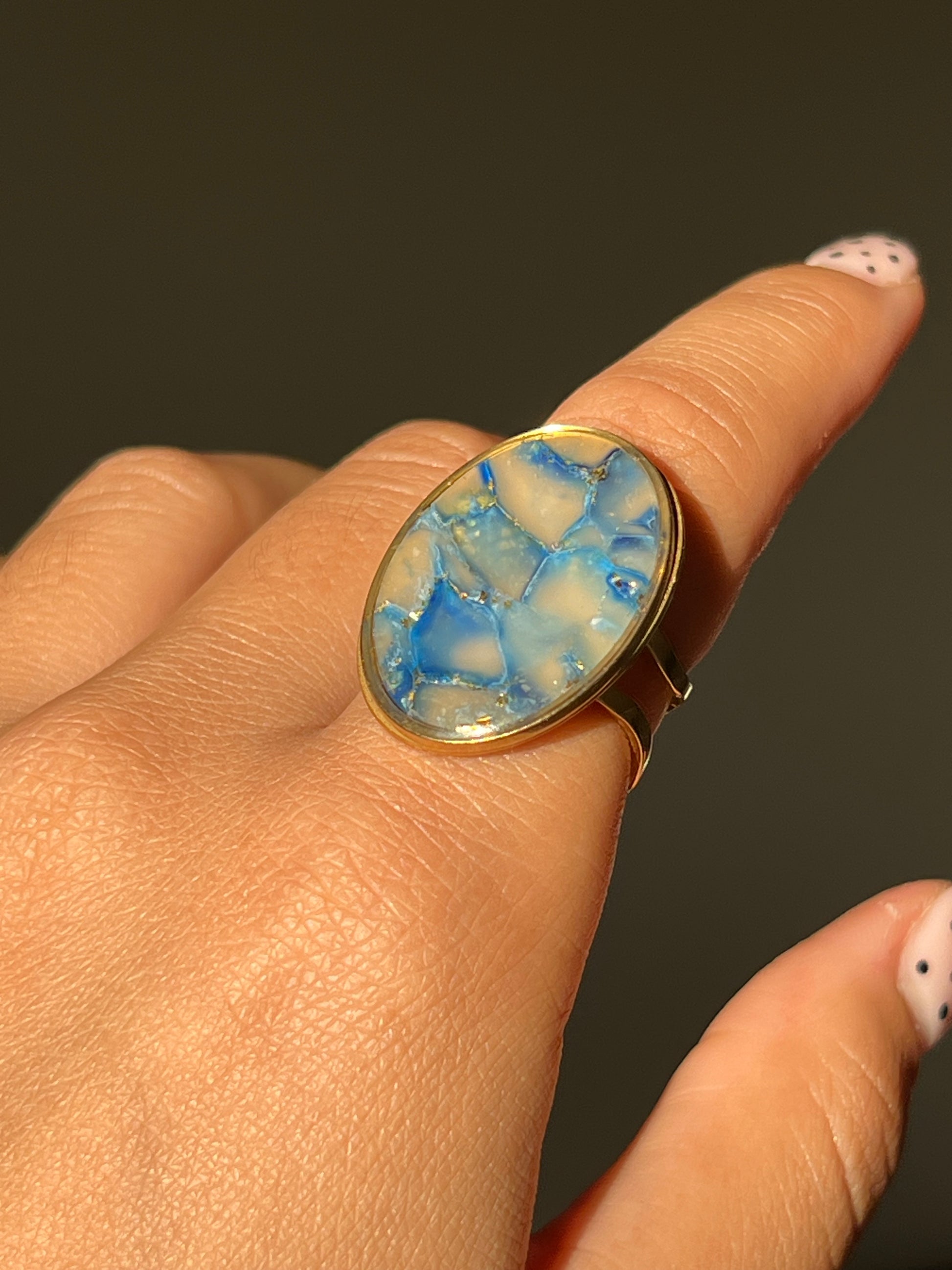 Anillo ajustable hecho a mano con arcilla polimérica y acero inoxidable.