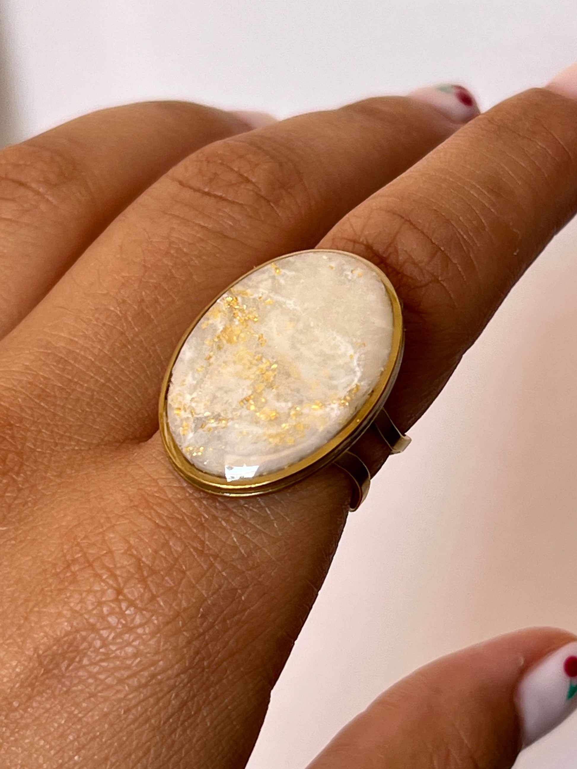 Anillo ajustable hecho a mano con arcilla polimérica y acero inoxidable.
