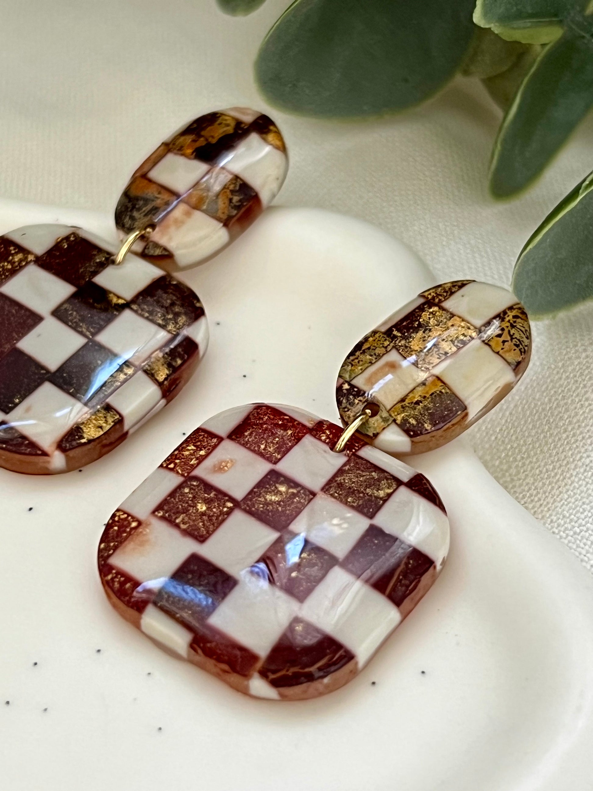 Pendientes hechos a mano de arcilla polimérica, resina UV y acero inoxidable hipoalergénico.