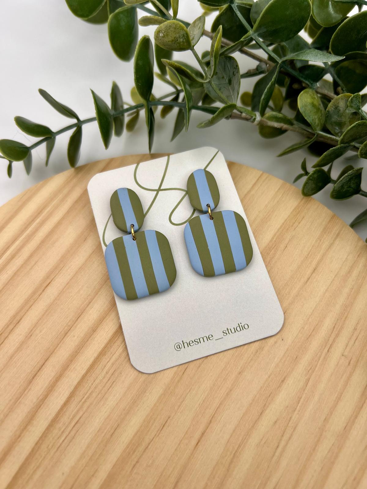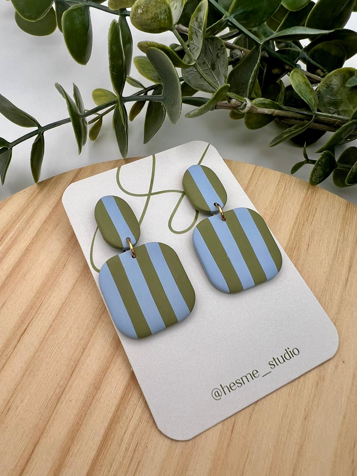 Pendientes hechos a mano de arcilla polimérica y acero inoxidable hipoalergénico.