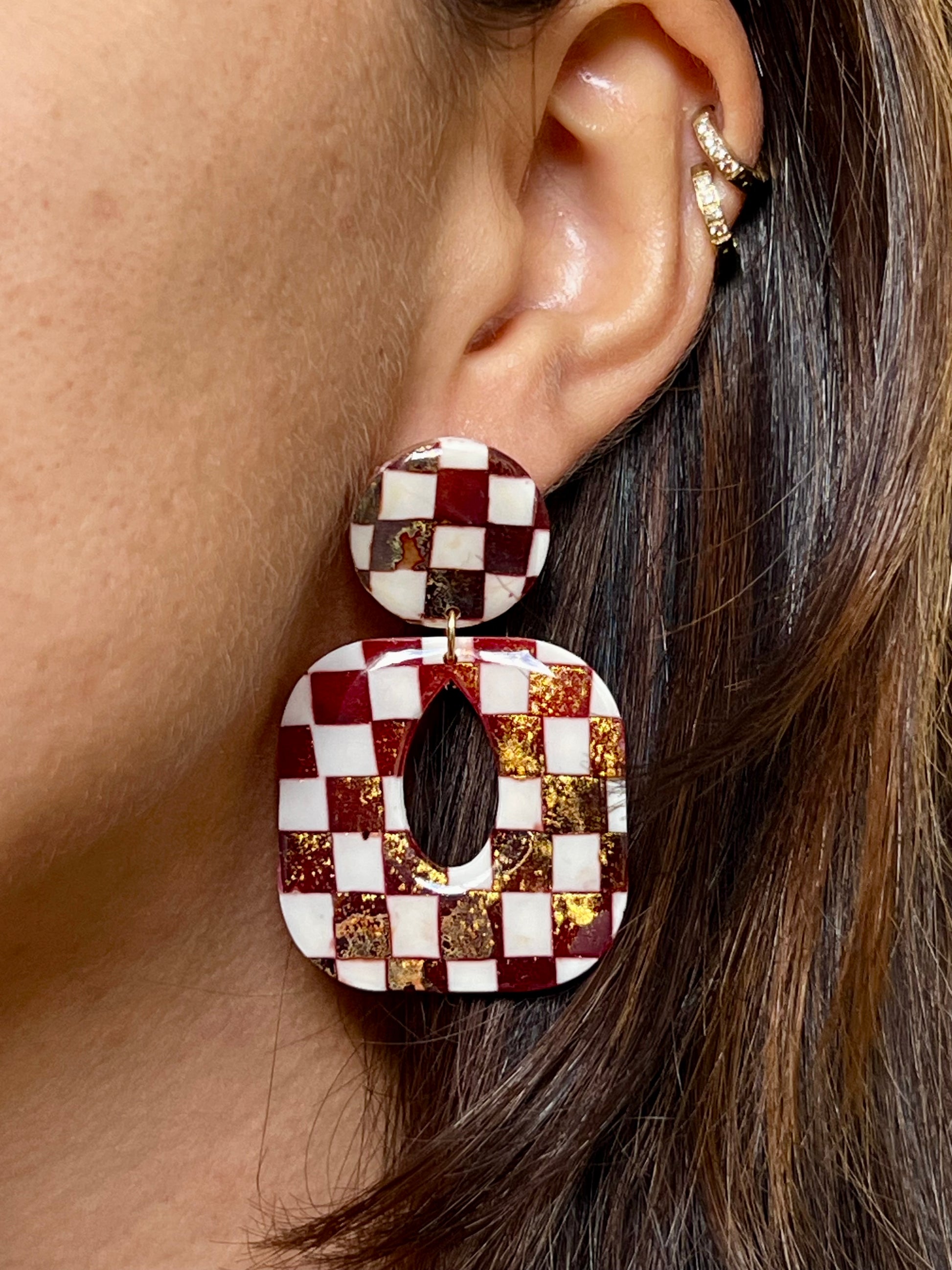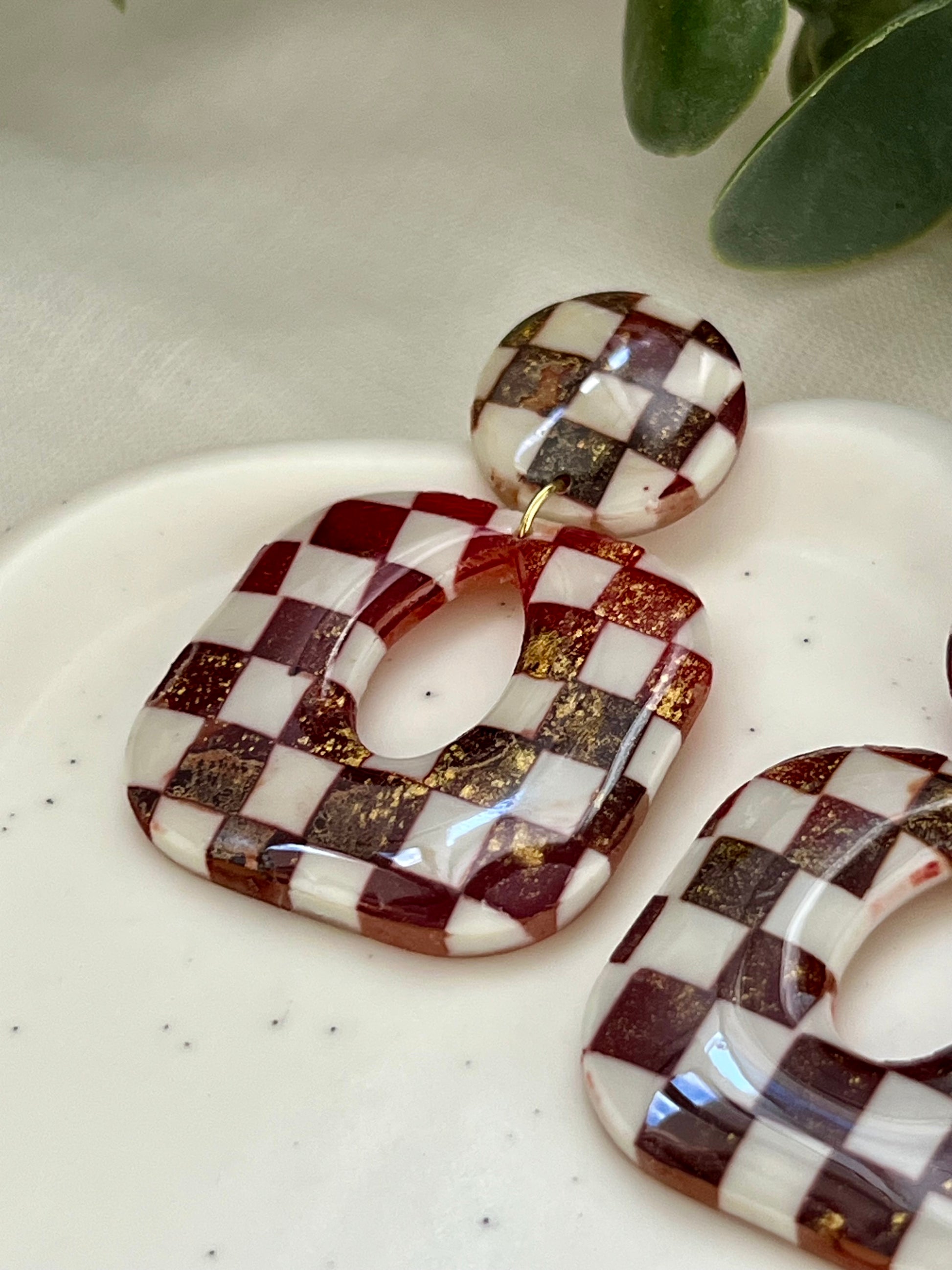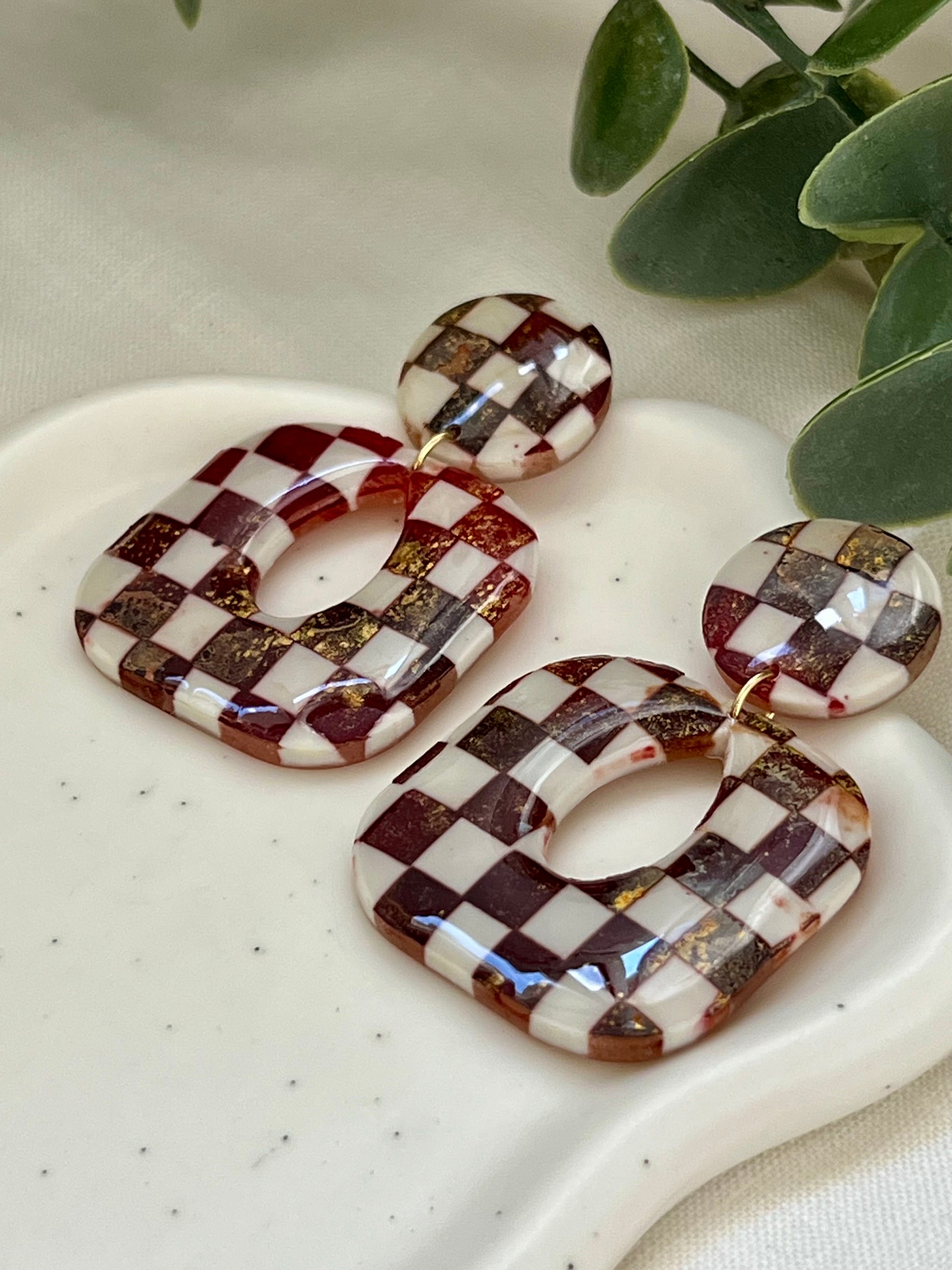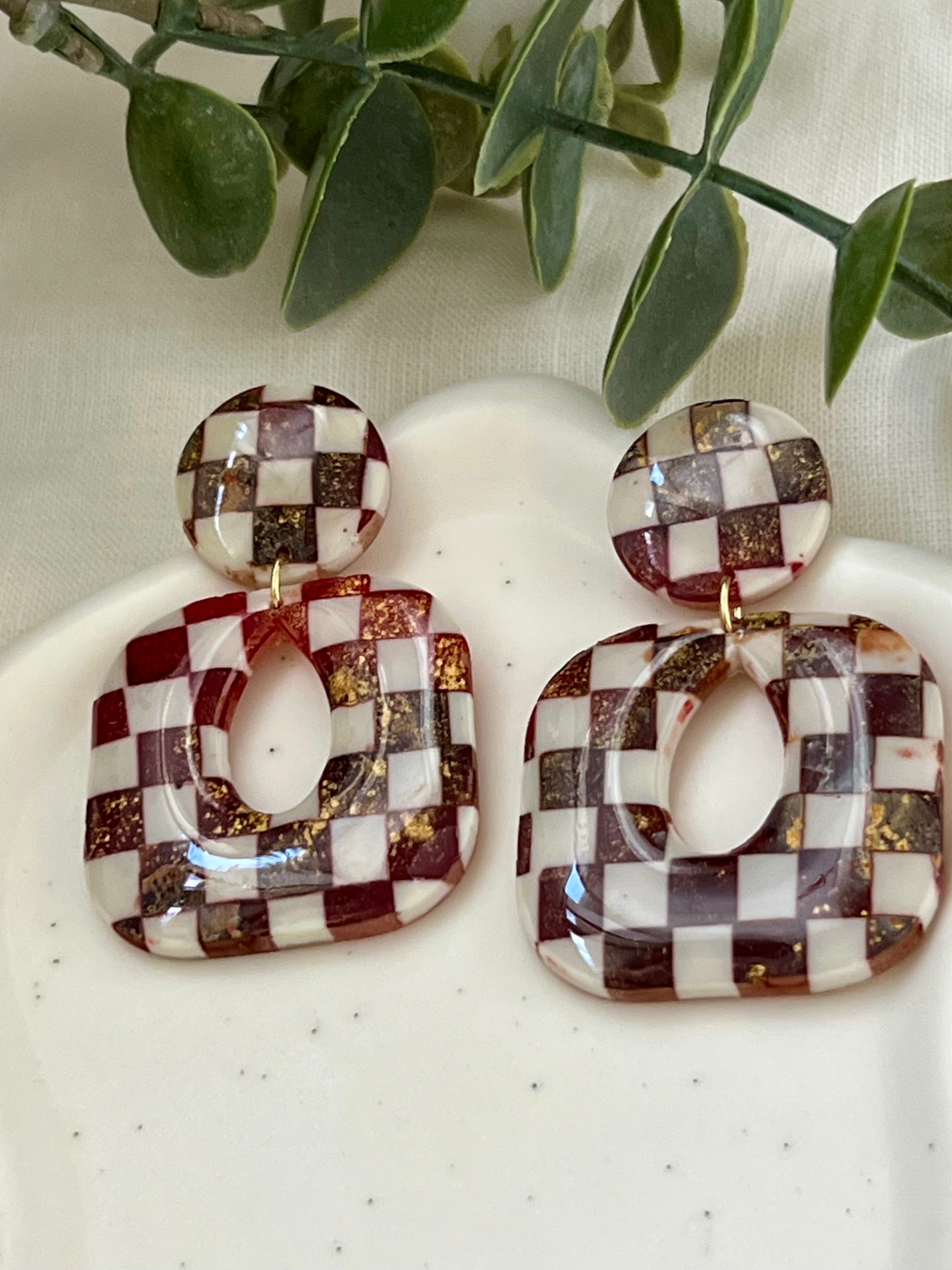 Pendientes hechos a mano de arcilla polimérica, resina UV y cierre de acero inoxidable hipoalergénico.