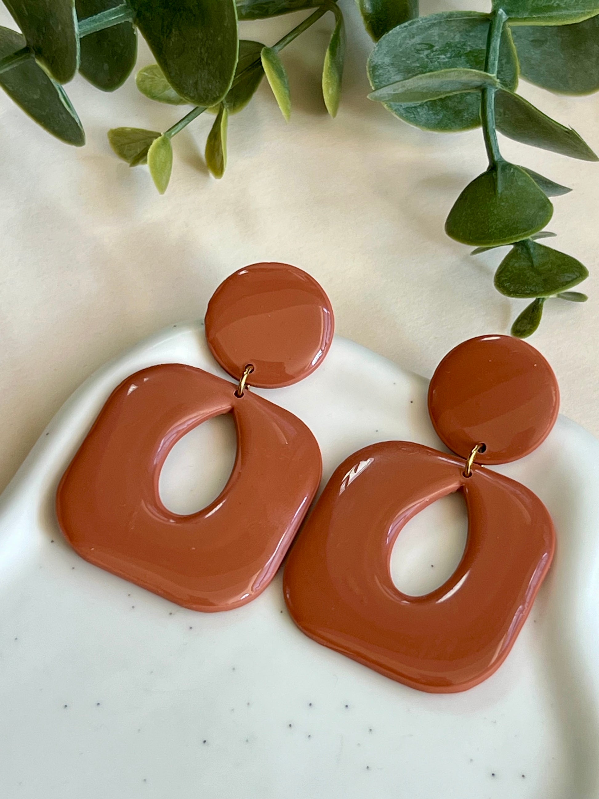 Pendientes hechos a mano de arcilla polimérica, resina UV y cierre de acero inoxidable hipoalergénico.