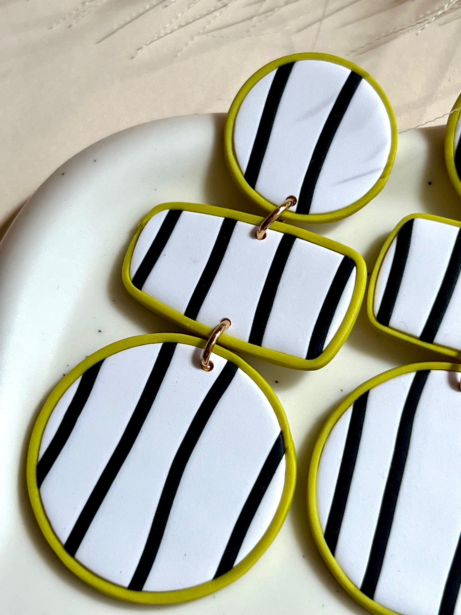 Pendientes hechos a mano de arcilla polimérica y cierre de acero inoxidable hipoalergénico.