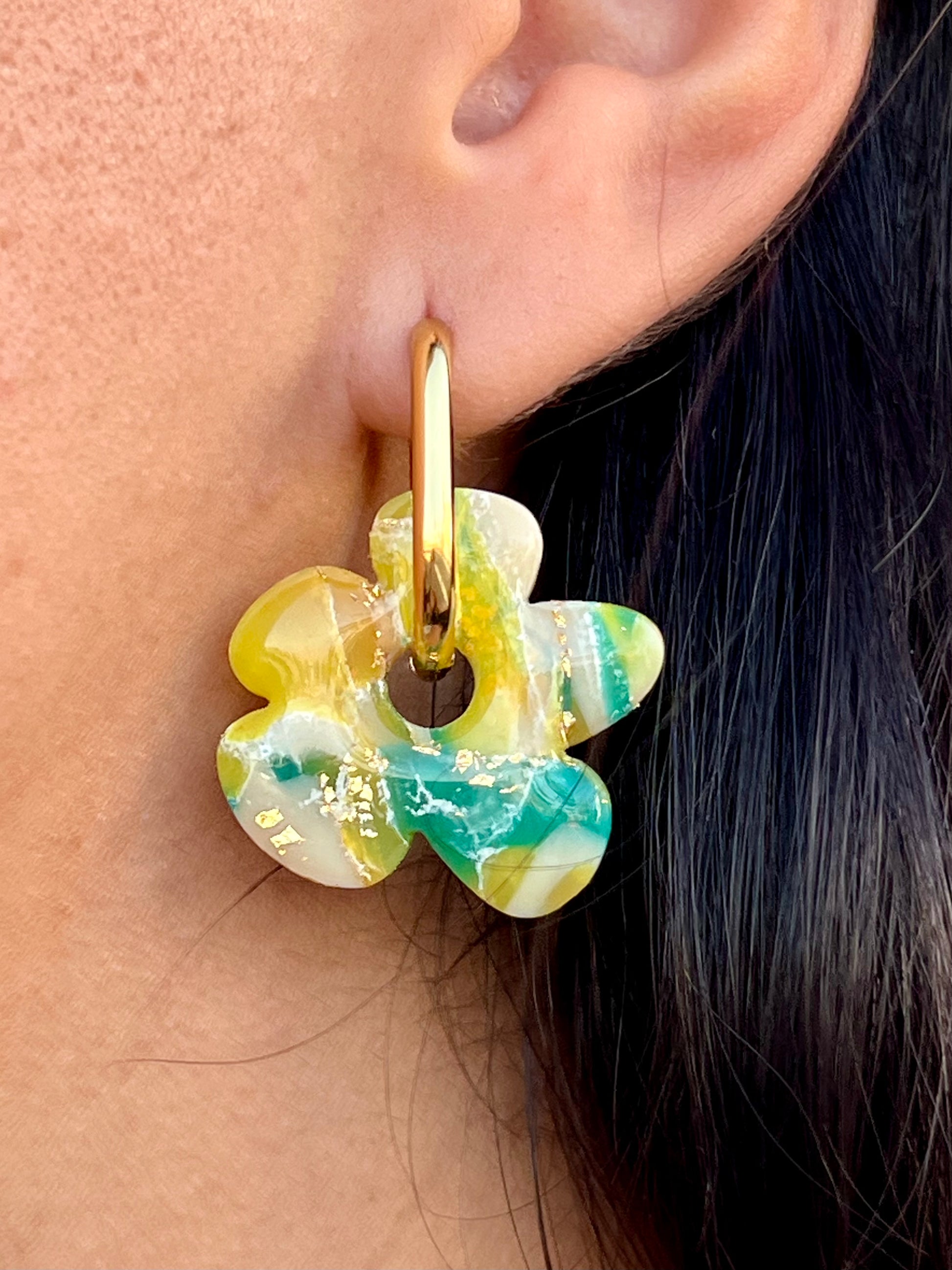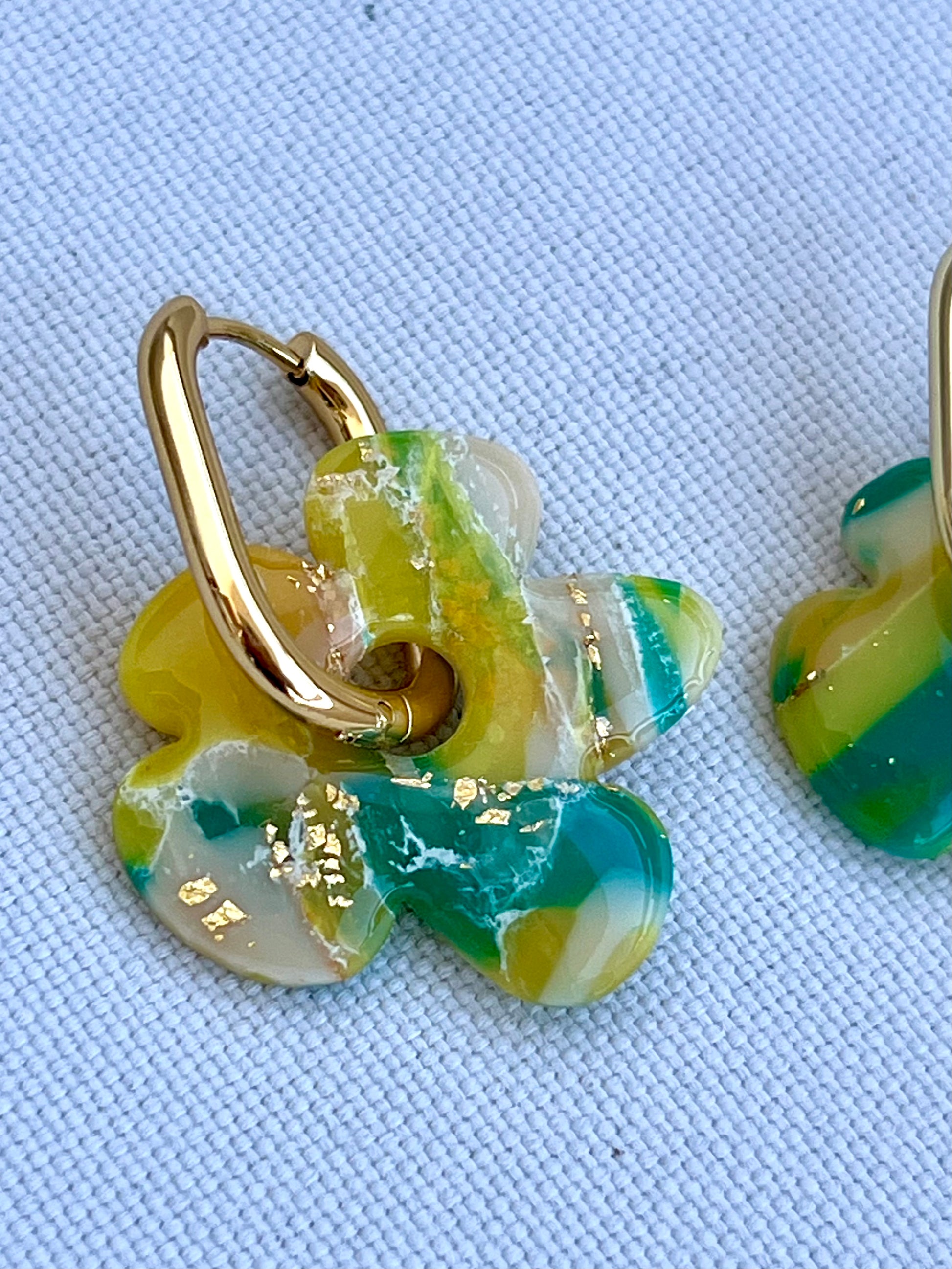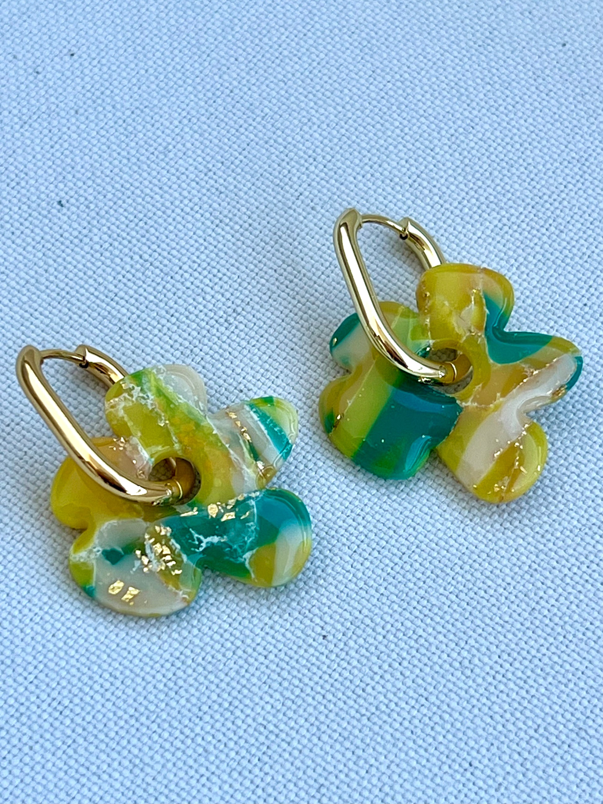 Pendientes hechos a mano de arcilla polimérica y acero inoxidable hipoalergénico.