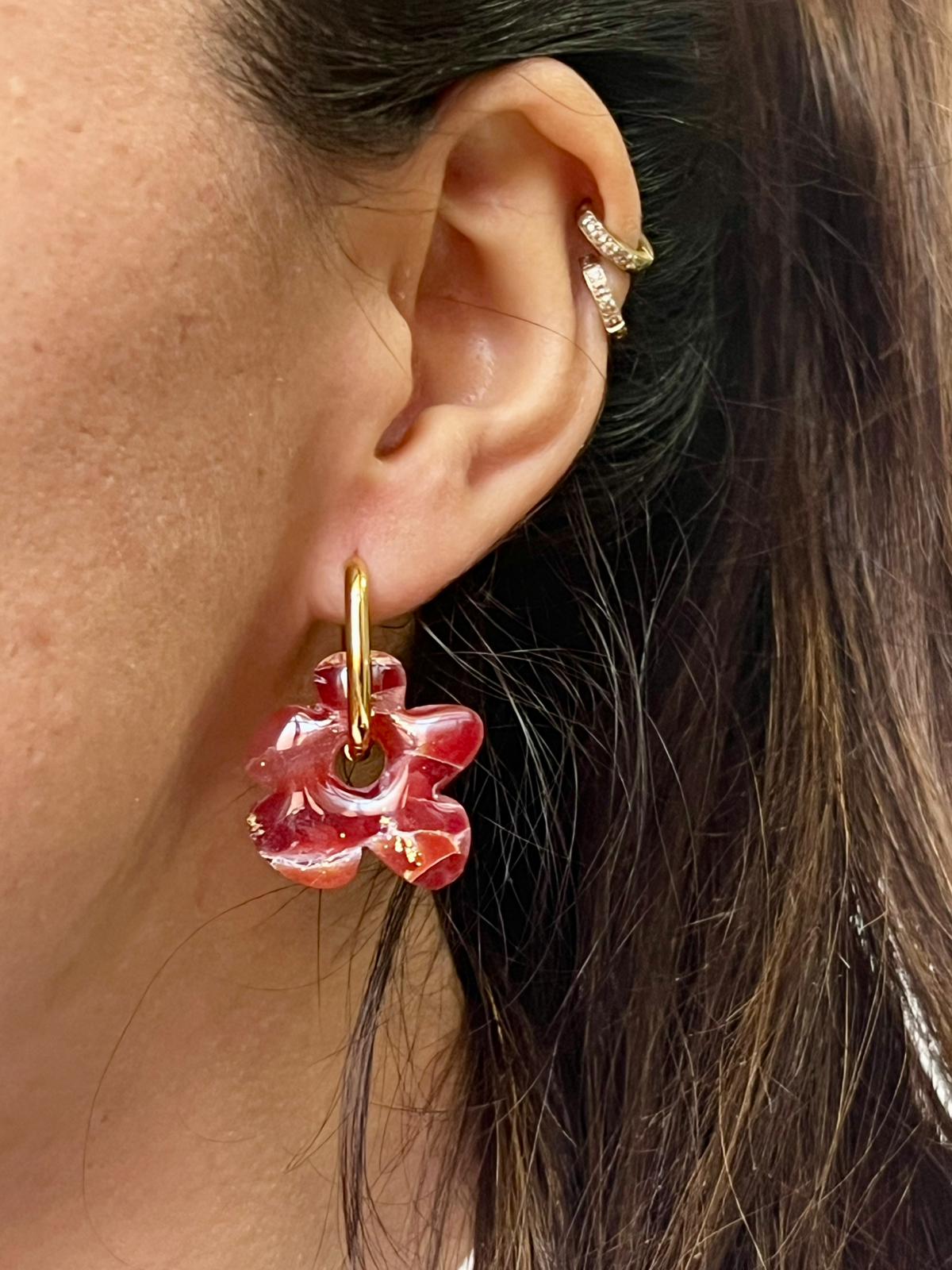 Pendientes hechos a mano de arcilla polimérica y acero inoxidable hipoalergénico.