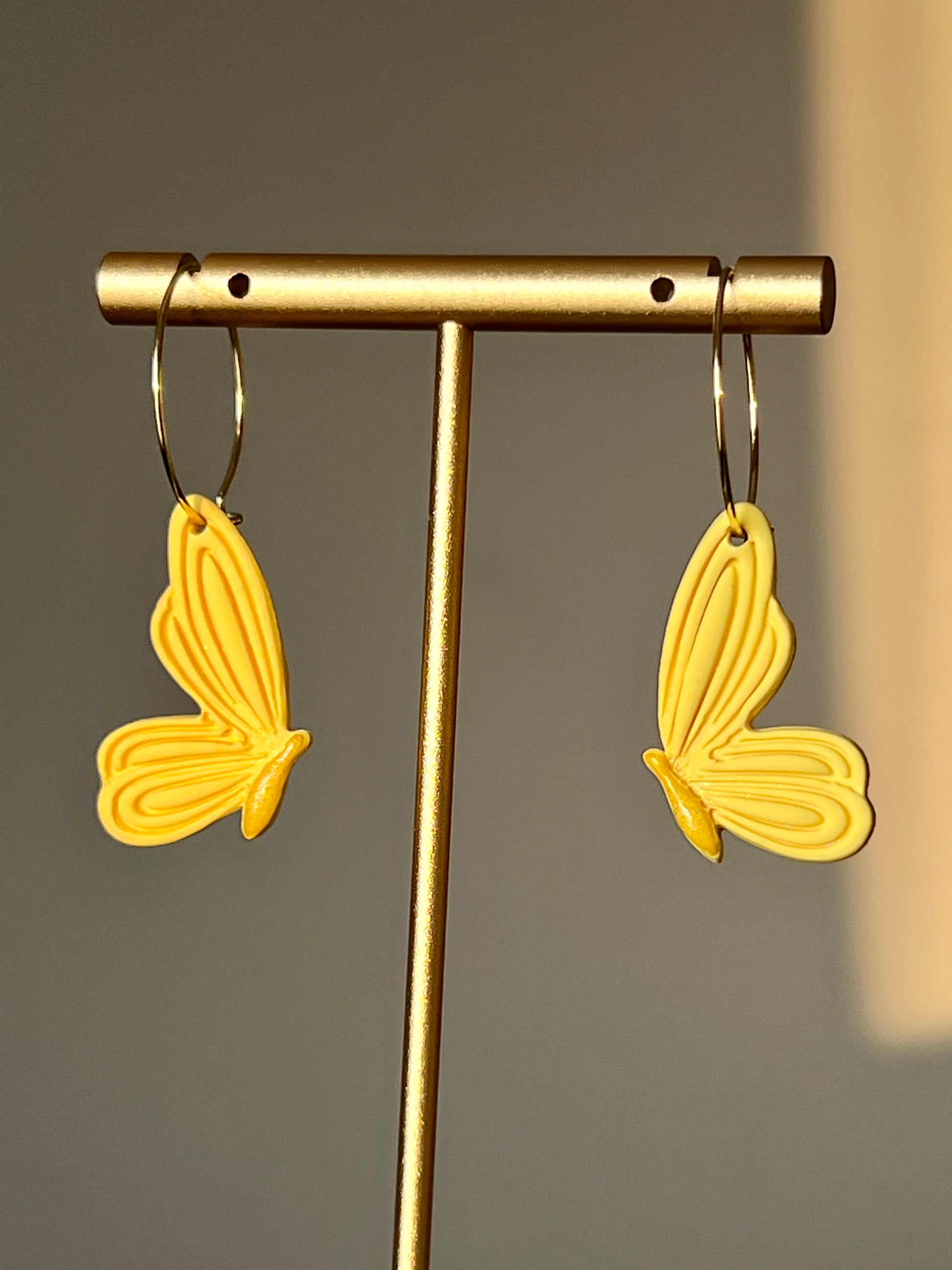 Pendientes hechos a mano de arcilla polimérica y acero inoxidable hipoalergénico.