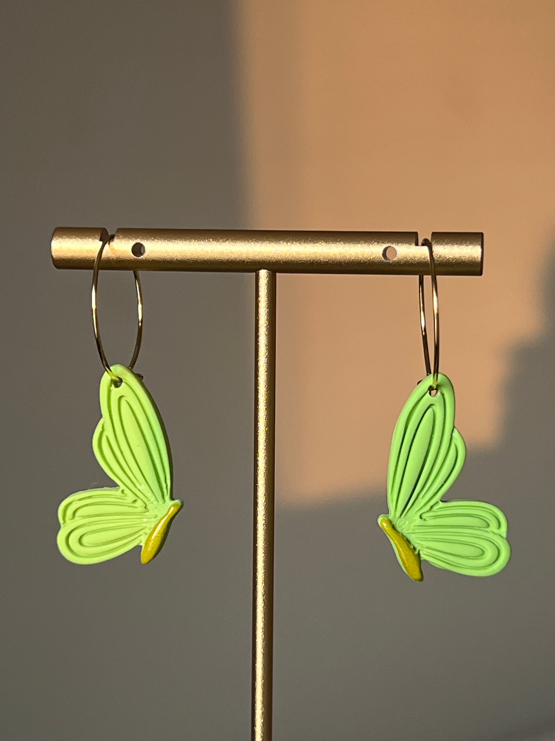 Pendientes hechos a mano de arcilla polimérica y acero inoxidable hipoalergénico.