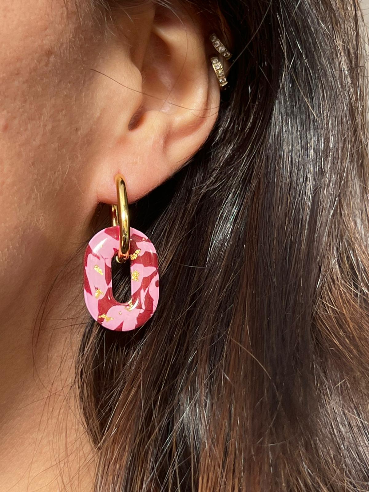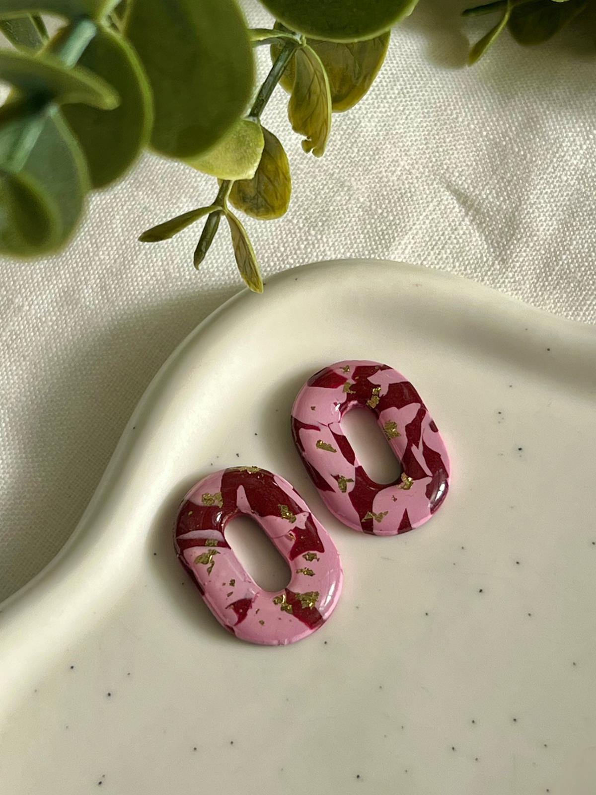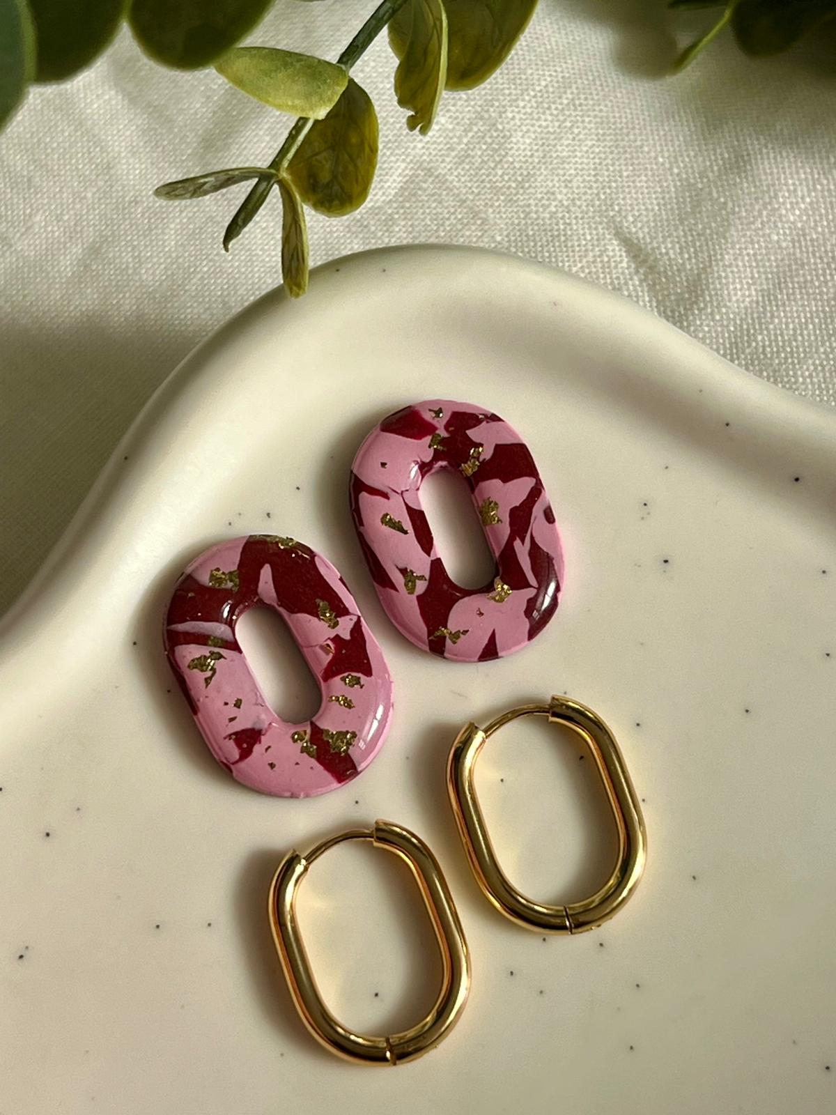 Pendientes hechos a mano de arcilla polimérica y acero inoxidable hipoalergénico.