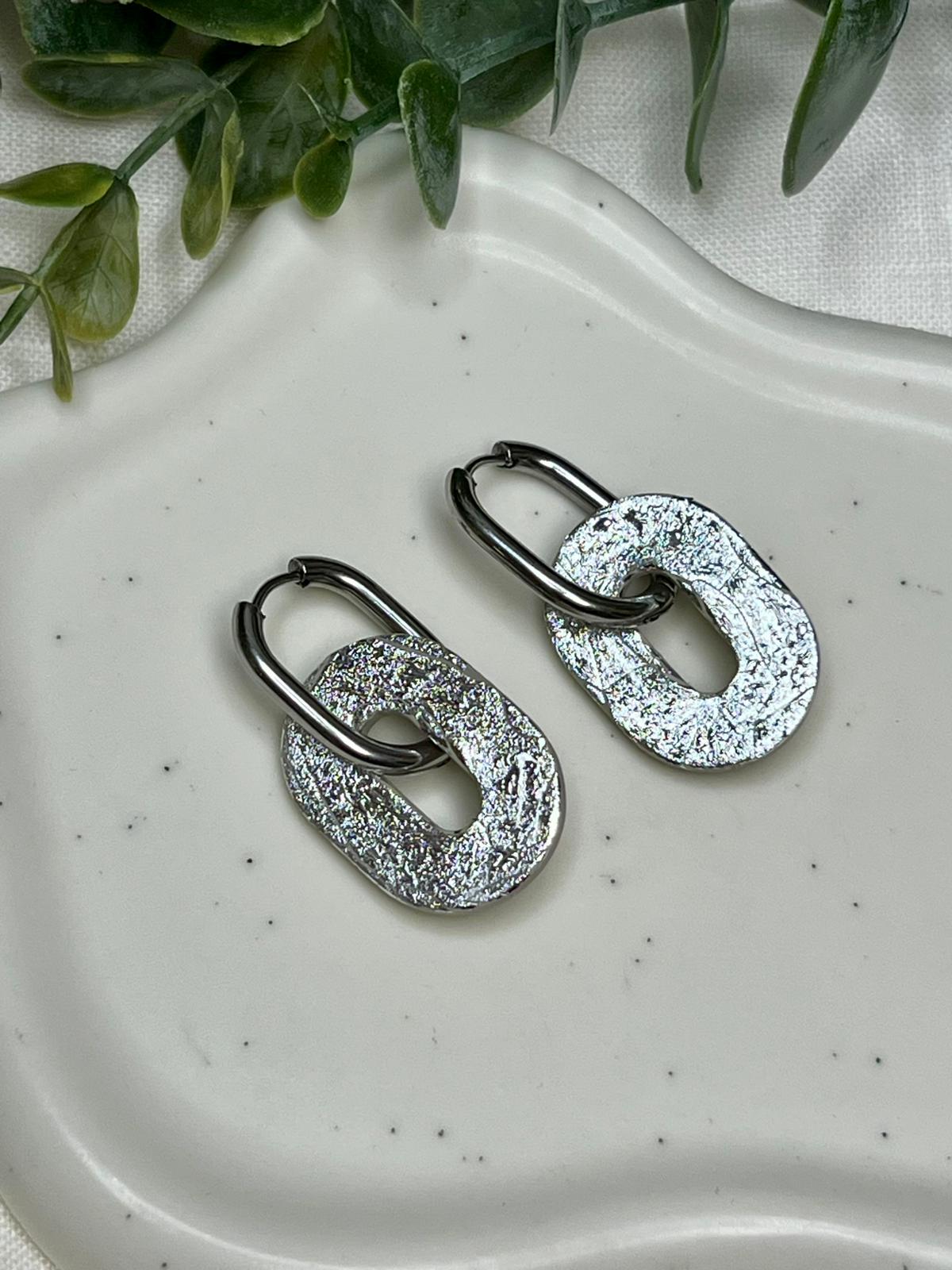 Pendientes hechos a mano de arcilla polimérica y acero inoxidable hipoalergénico.
