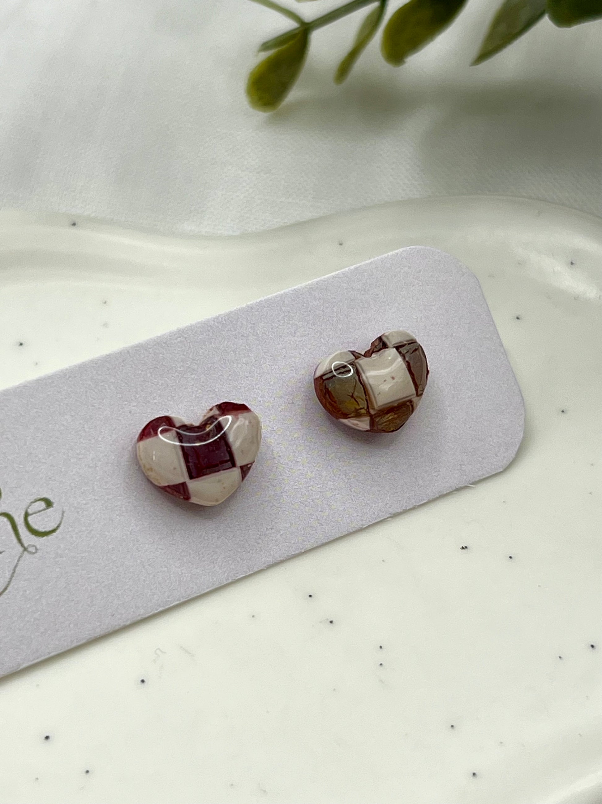 Pendientes hechos a mano de arcilla polimérica y acero inoxidable hipoalergénico.