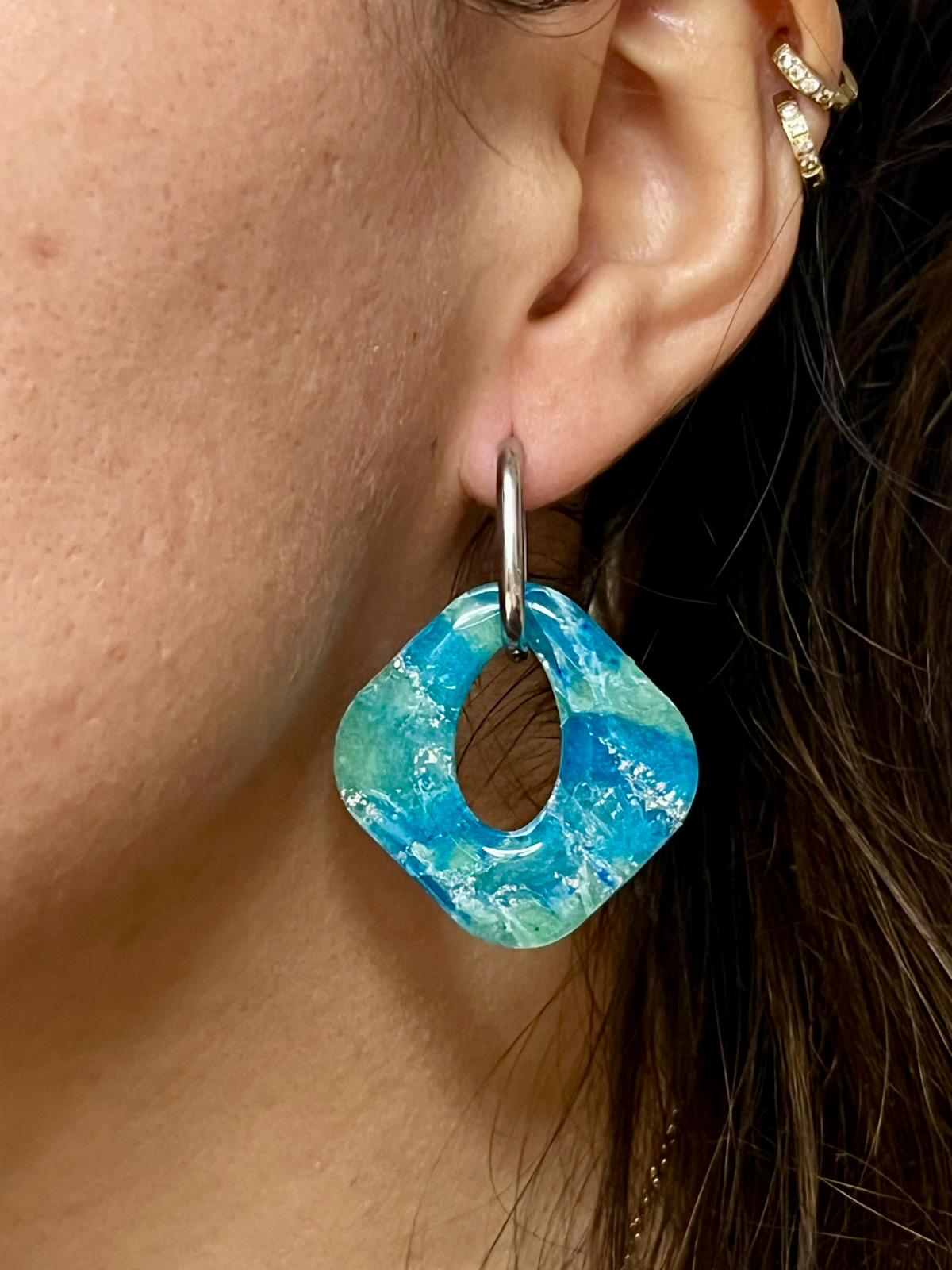 Pendientes hechos a mano de arcilla polimérica y acero inoxidable hipoalergénico.