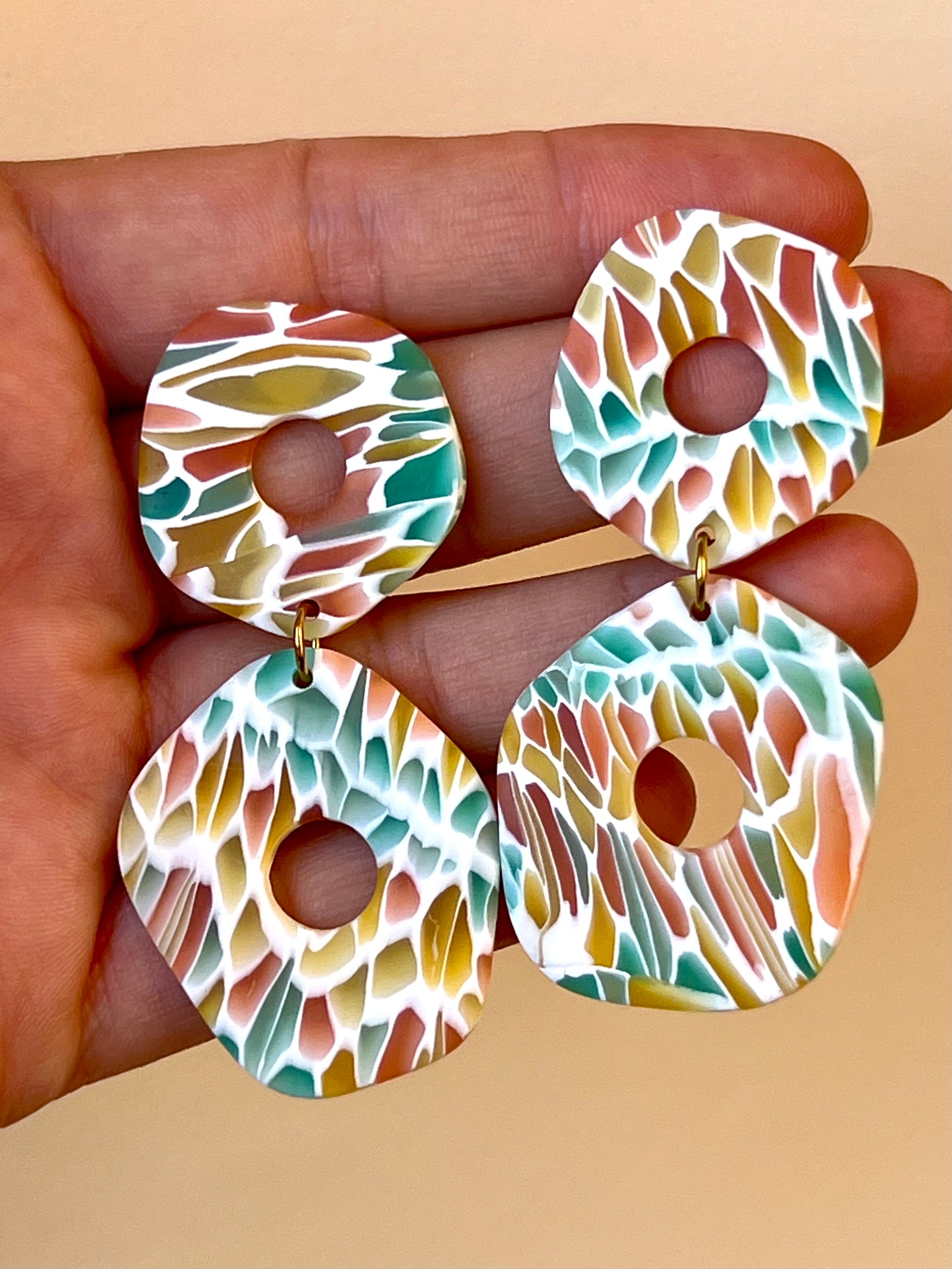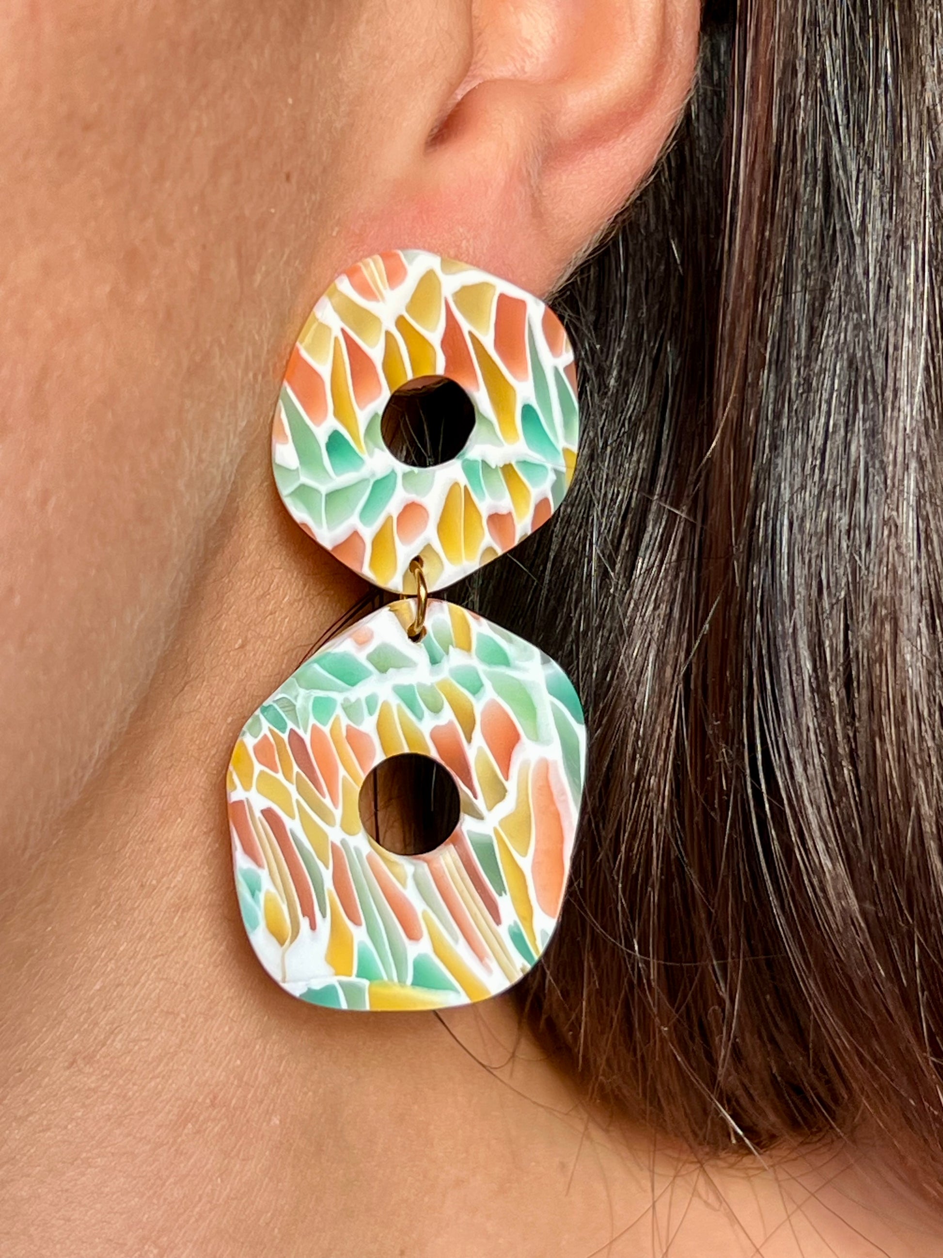 Pendientes hechos a mano de arcilla polimérica y cierres de acero inoxidable hipoalergénico.