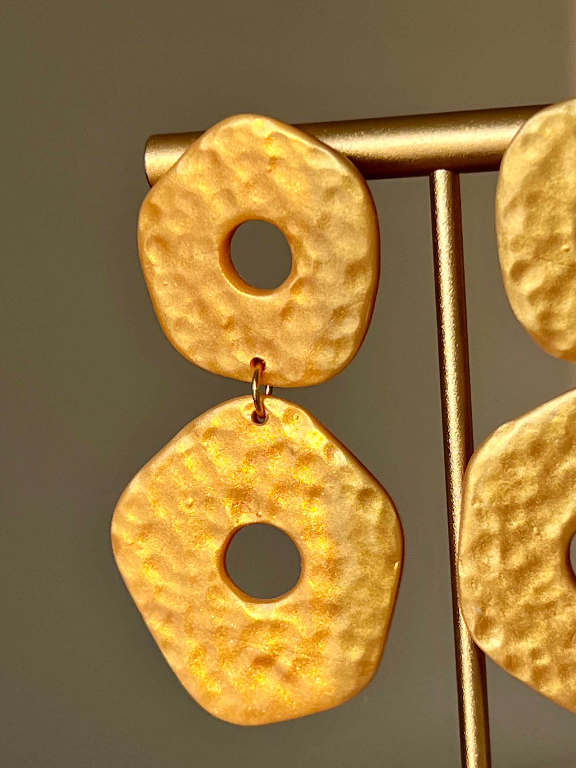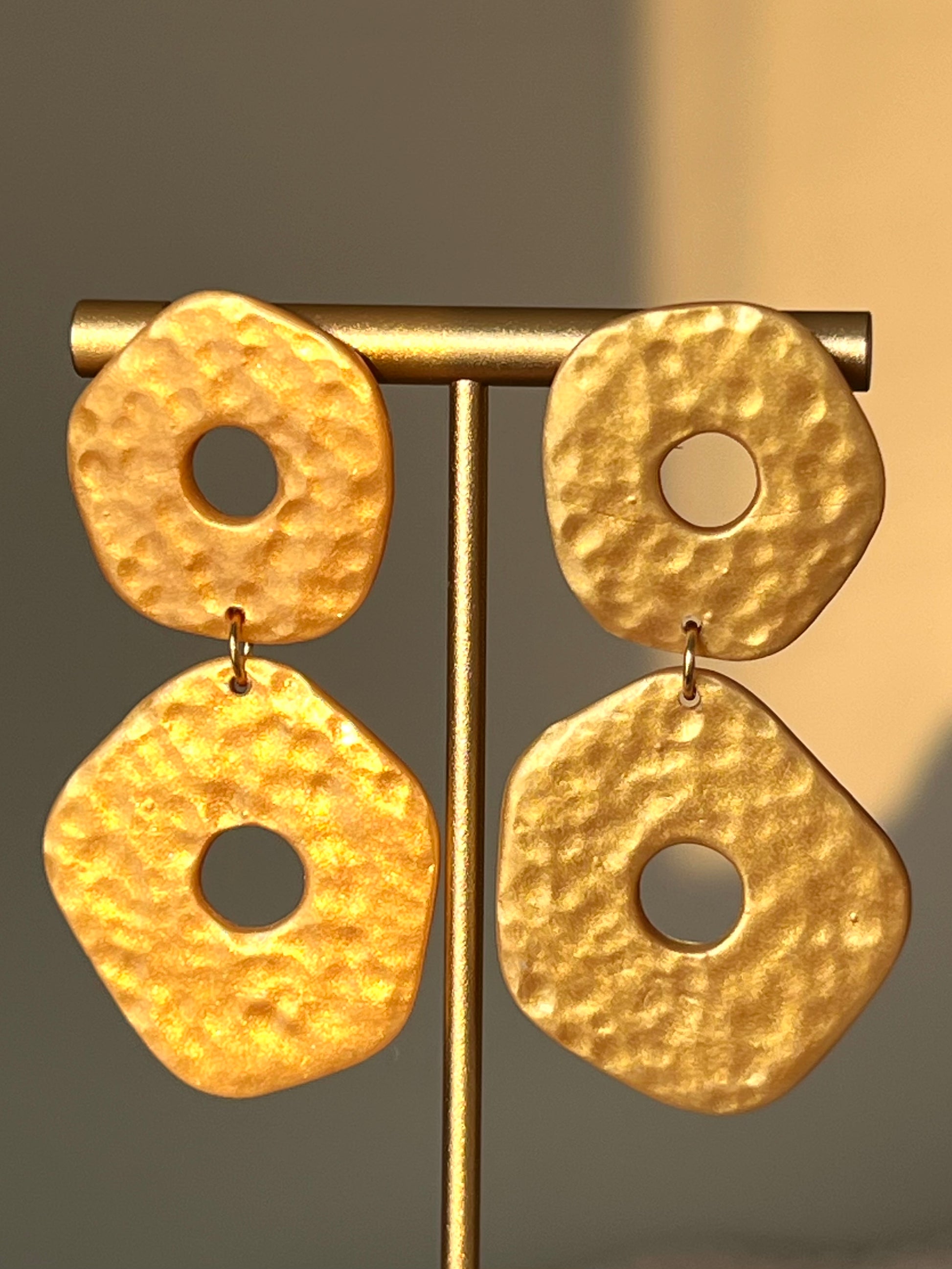 Pendientes hechos a mano de arcilla polimérica y cierres de acero inoxidable hipoalergénico.