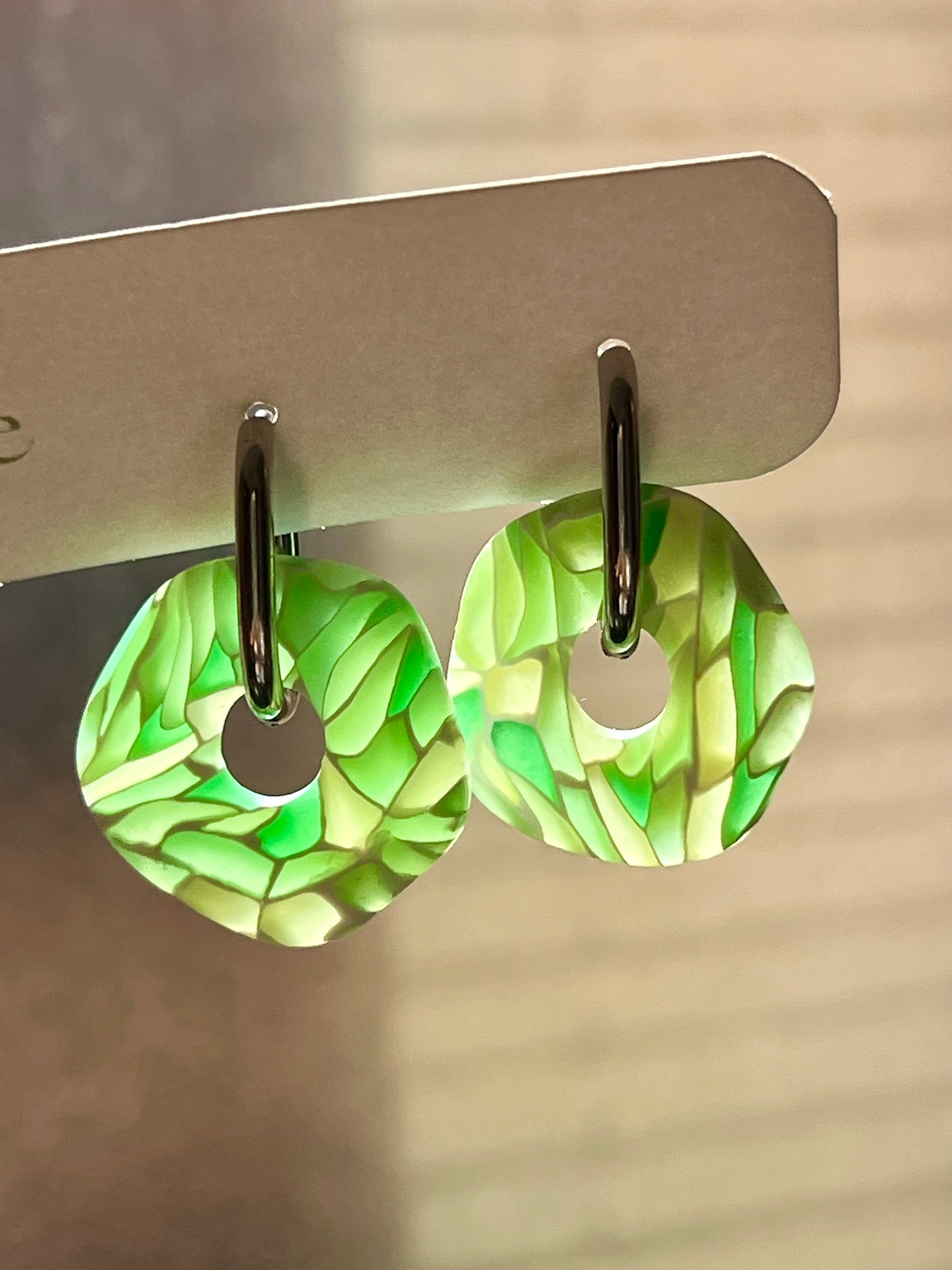 Pendientes hechos a mano de arcilla polimérica y acero inoxidable hipoalergénico.