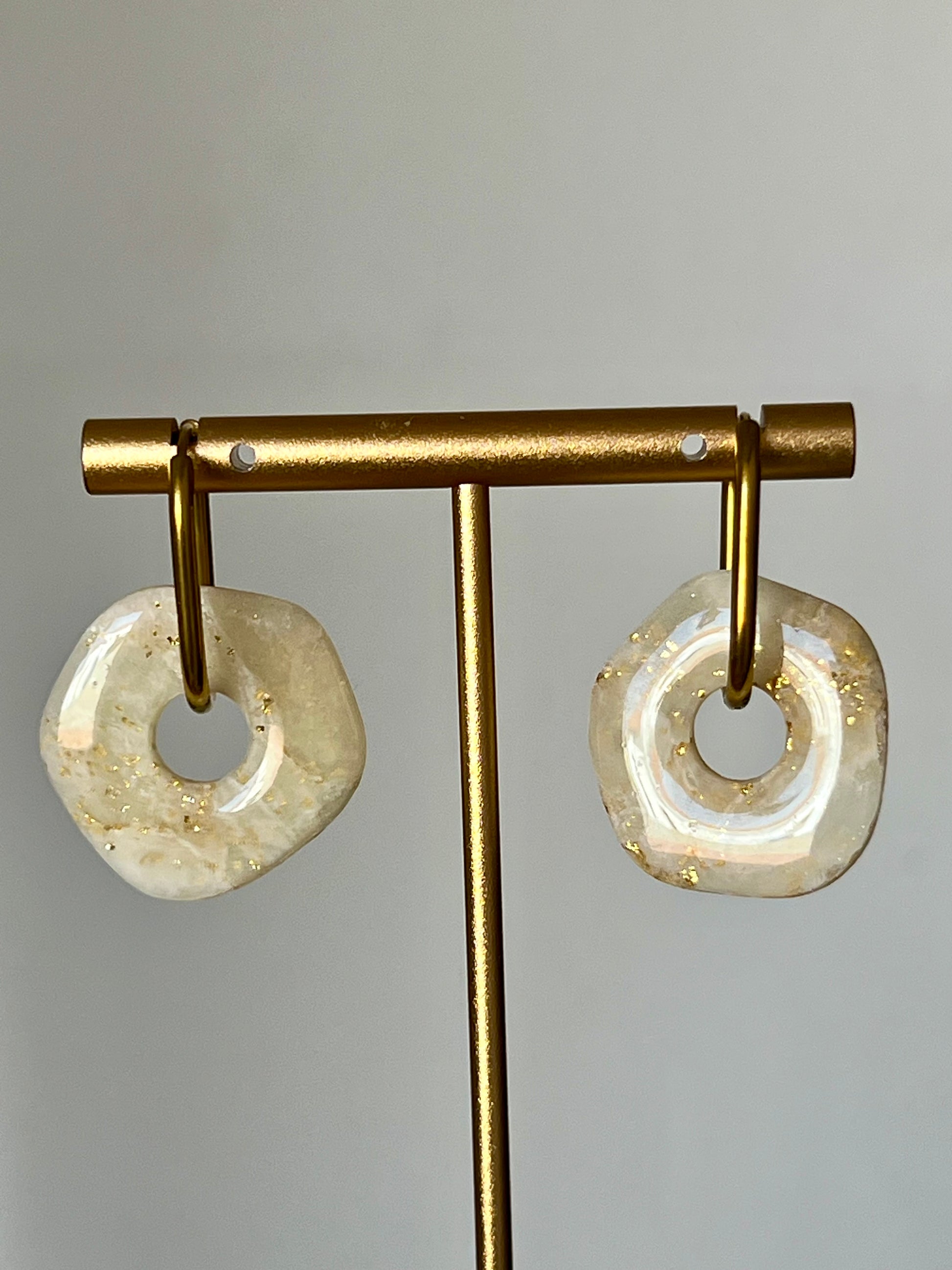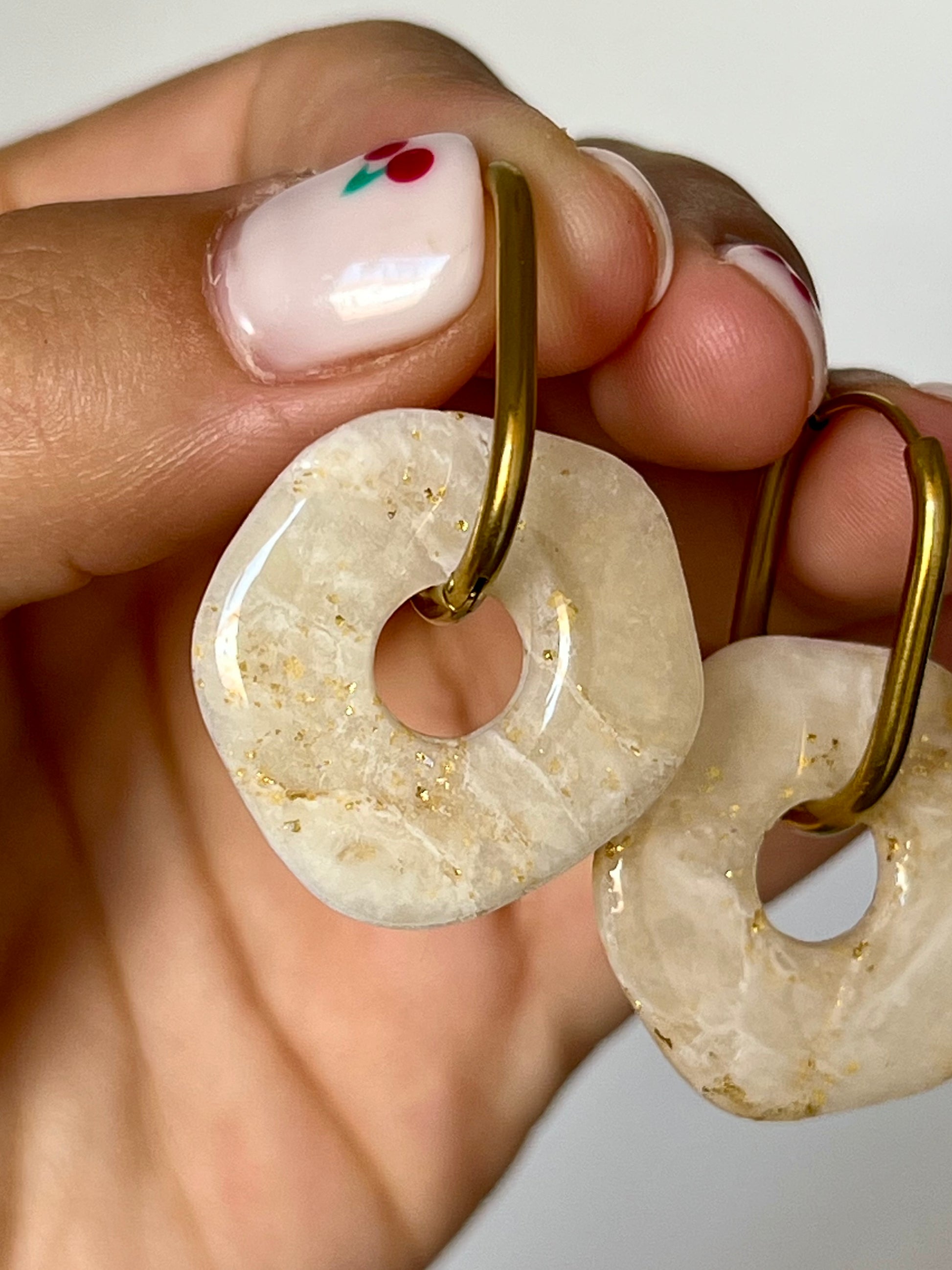 Pendientes hechos a mano de arcilla polimérica y acero inoxidable hipoalergénico.