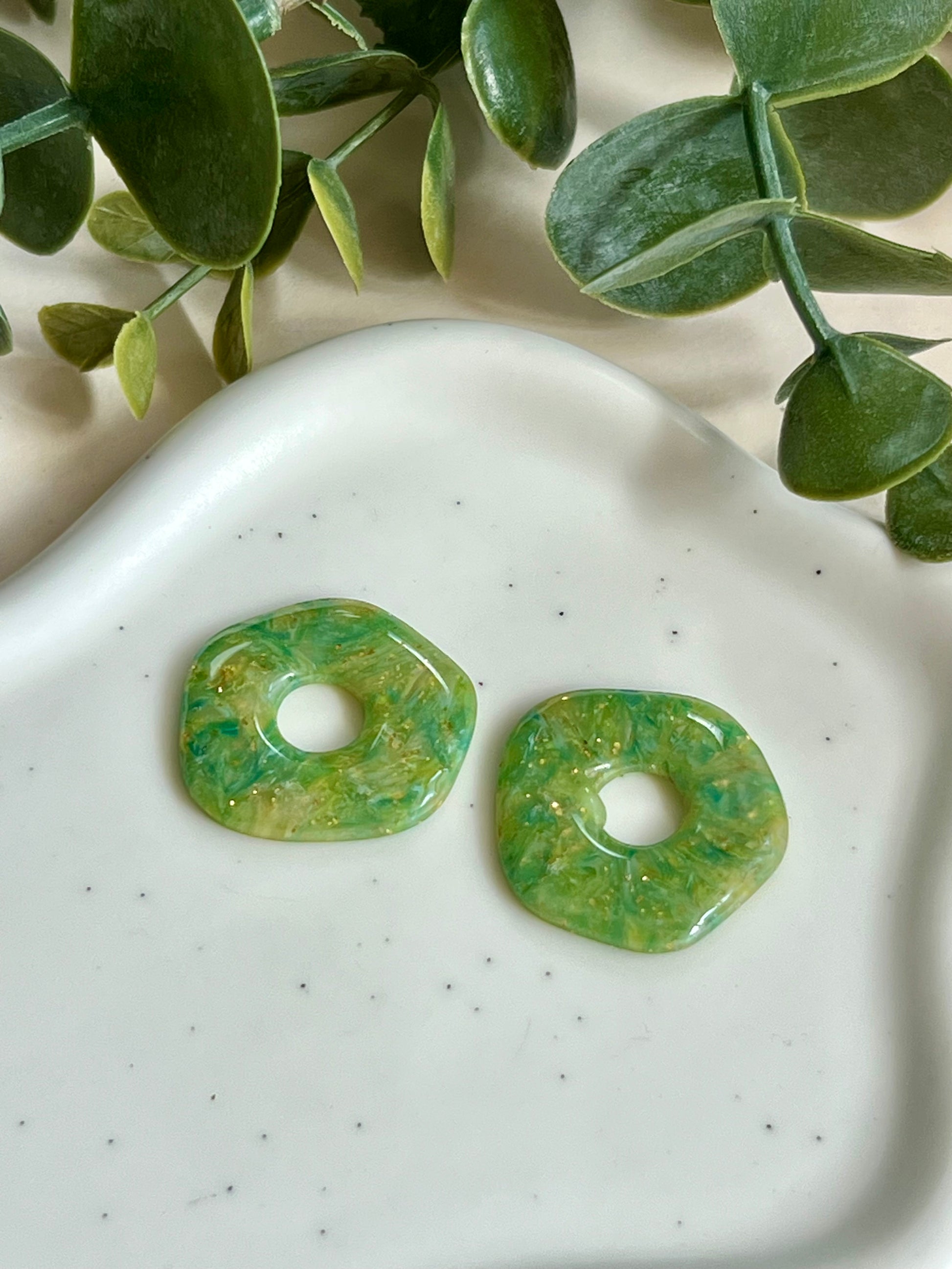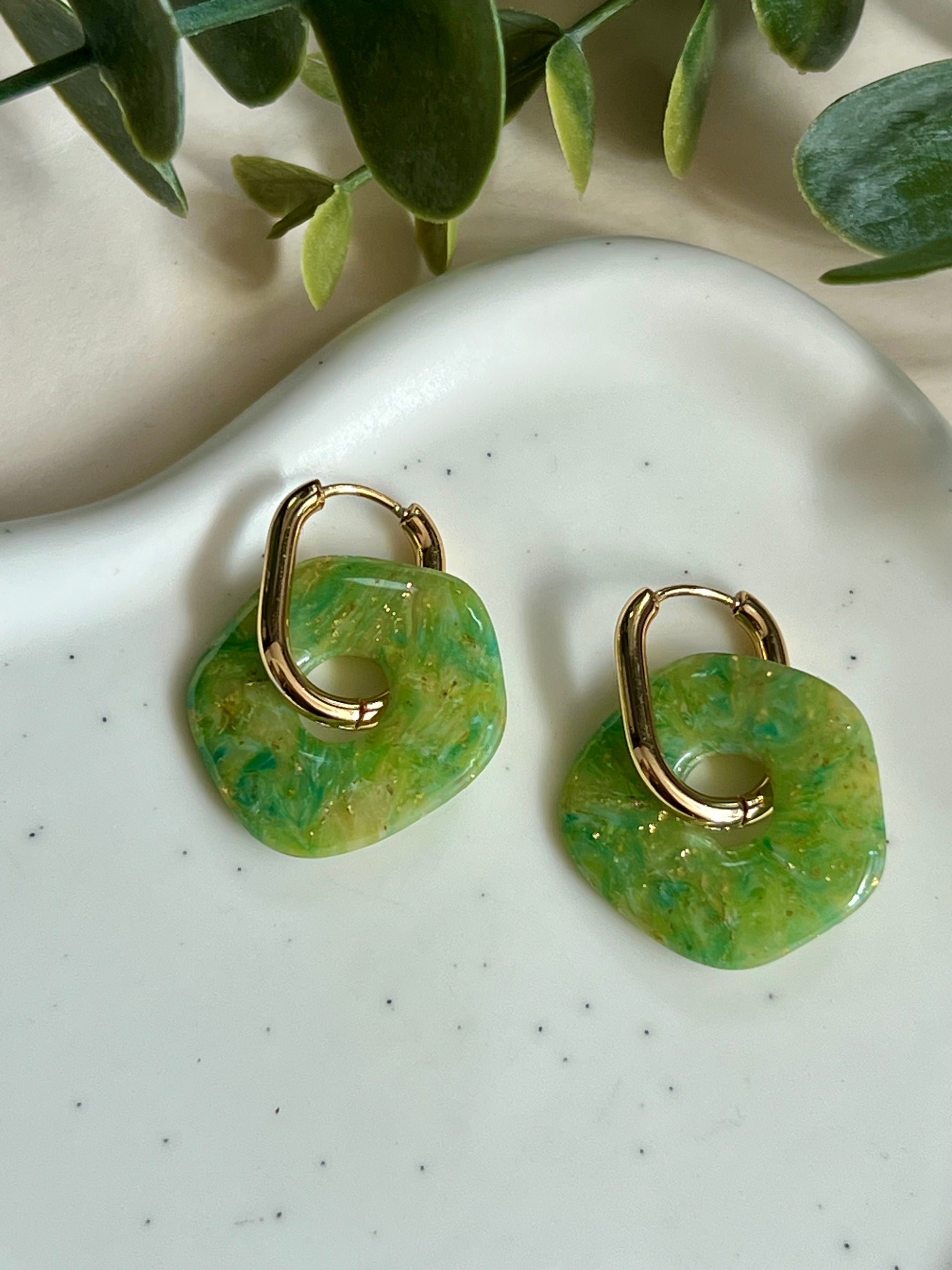 Pendientes hechos a mano de arcilla polimérica y acero inoxidable hipoalergénico.