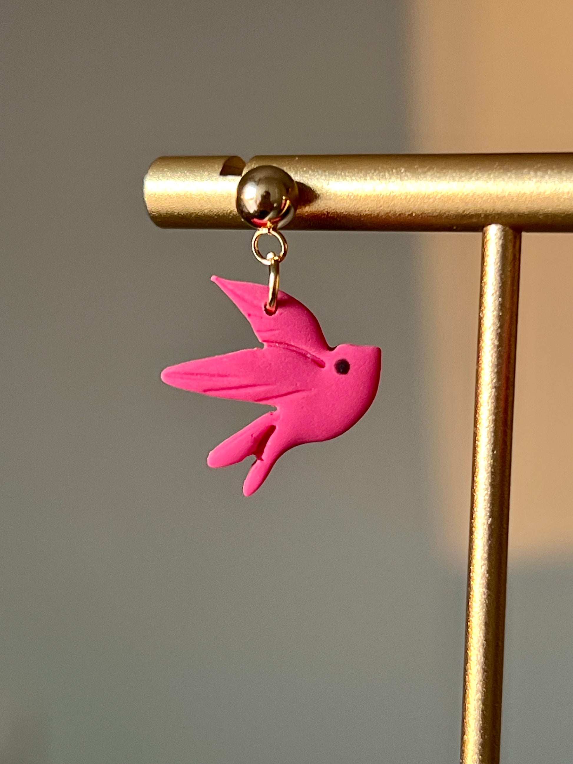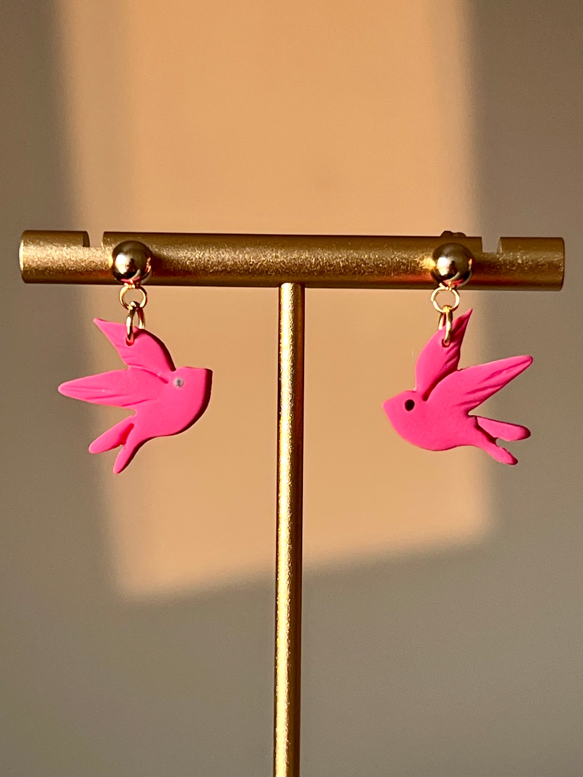 Pendientes hechos a mano con arcilla polimérica y cierre de acero inoxidable hipoalergénico.