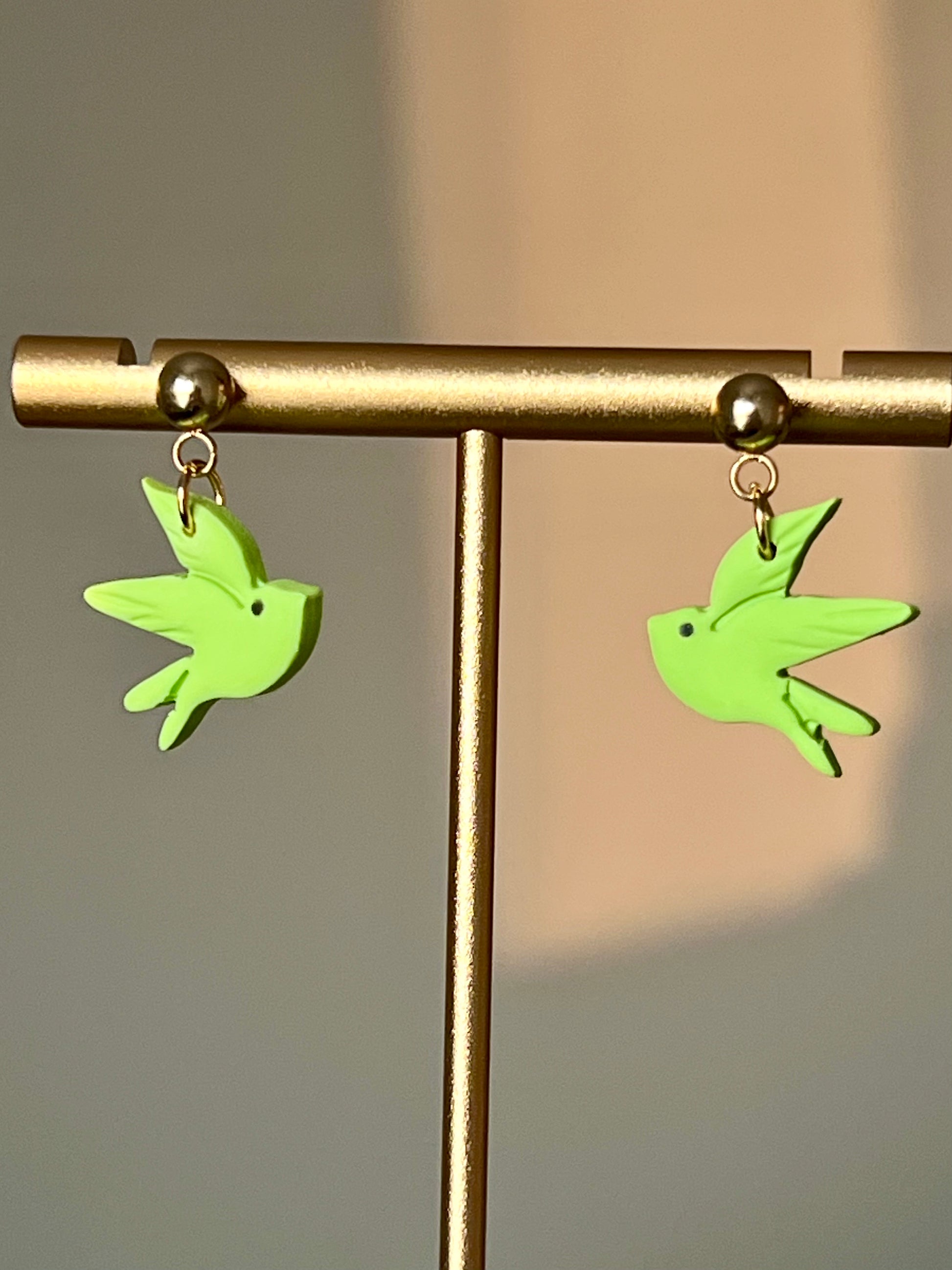Pendientes hechos a mano con arcilla polimérica y cierre de acero inoxidable hipoalergénico.