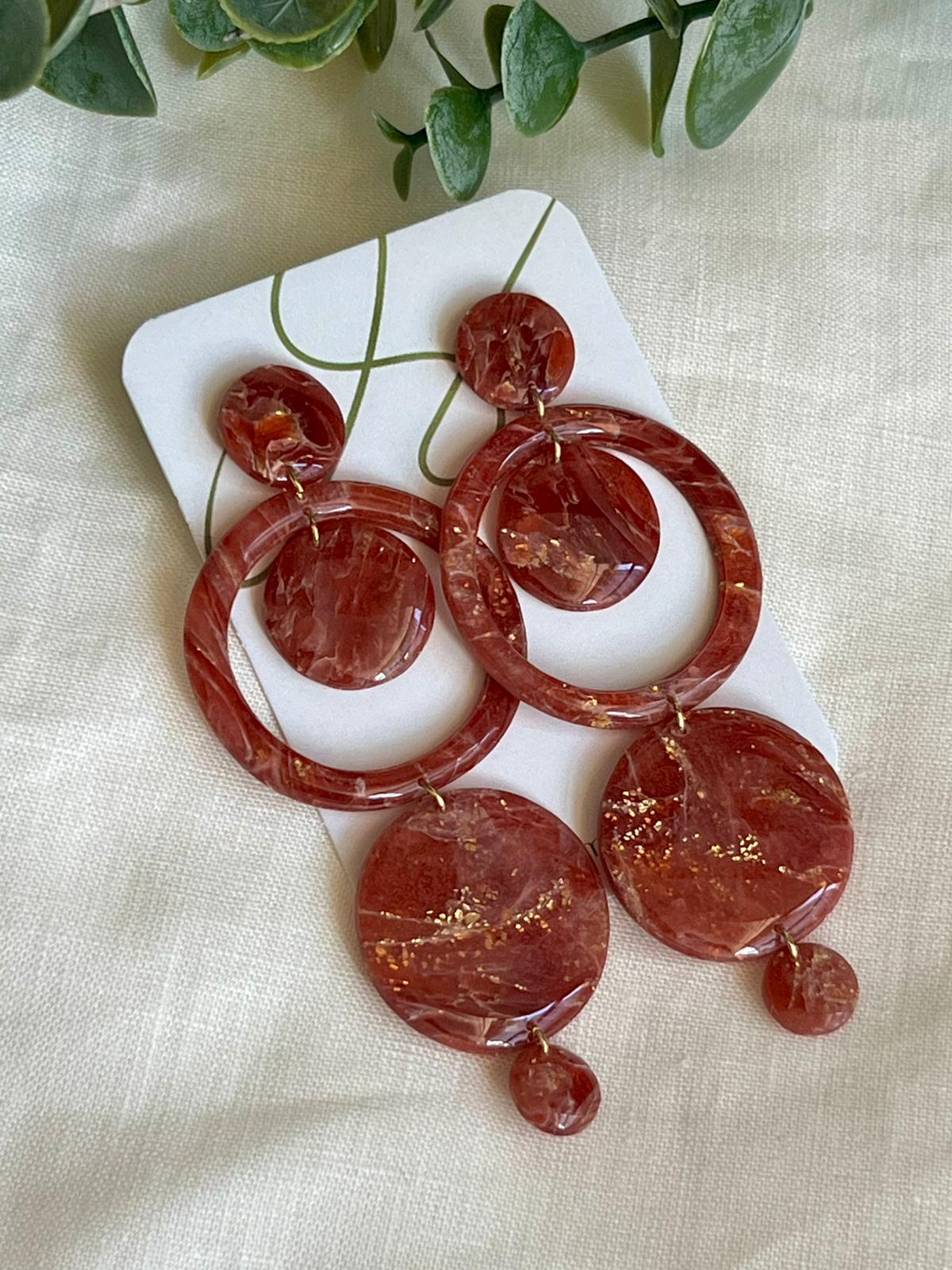 Pendientes hechos a mano de arcilla polimérica, resina UV y cierre de acero inoxidable hipoalergénico.