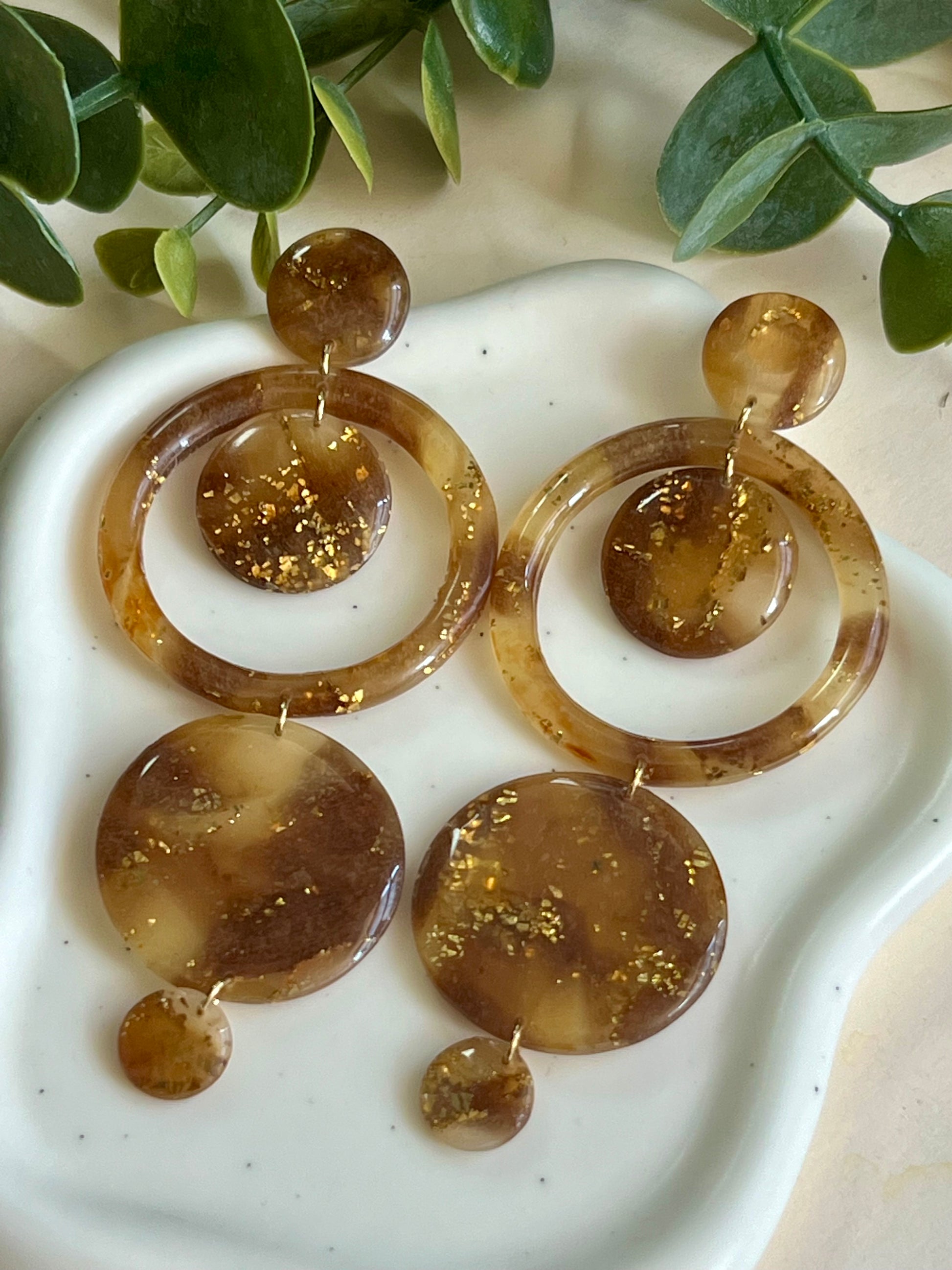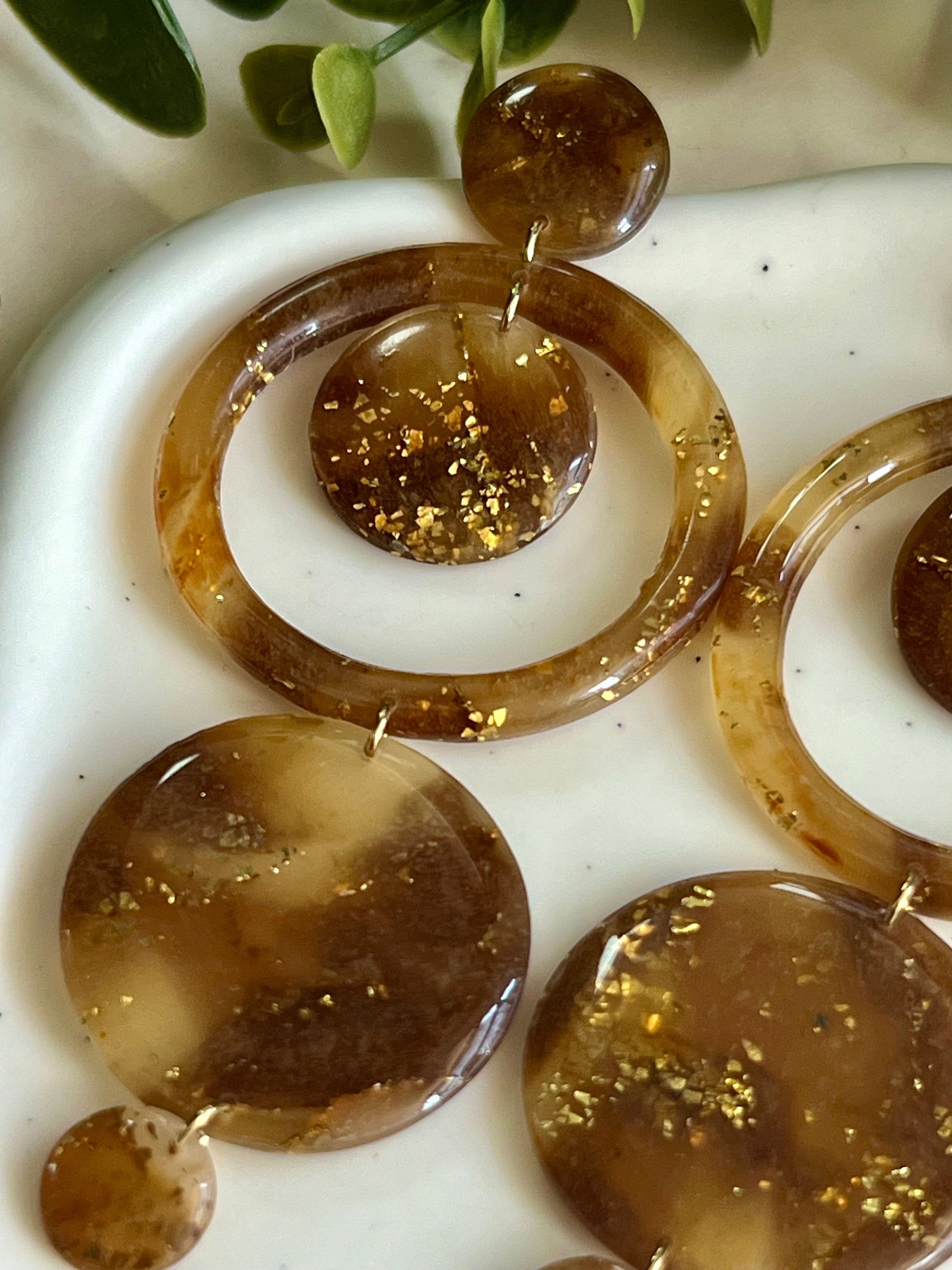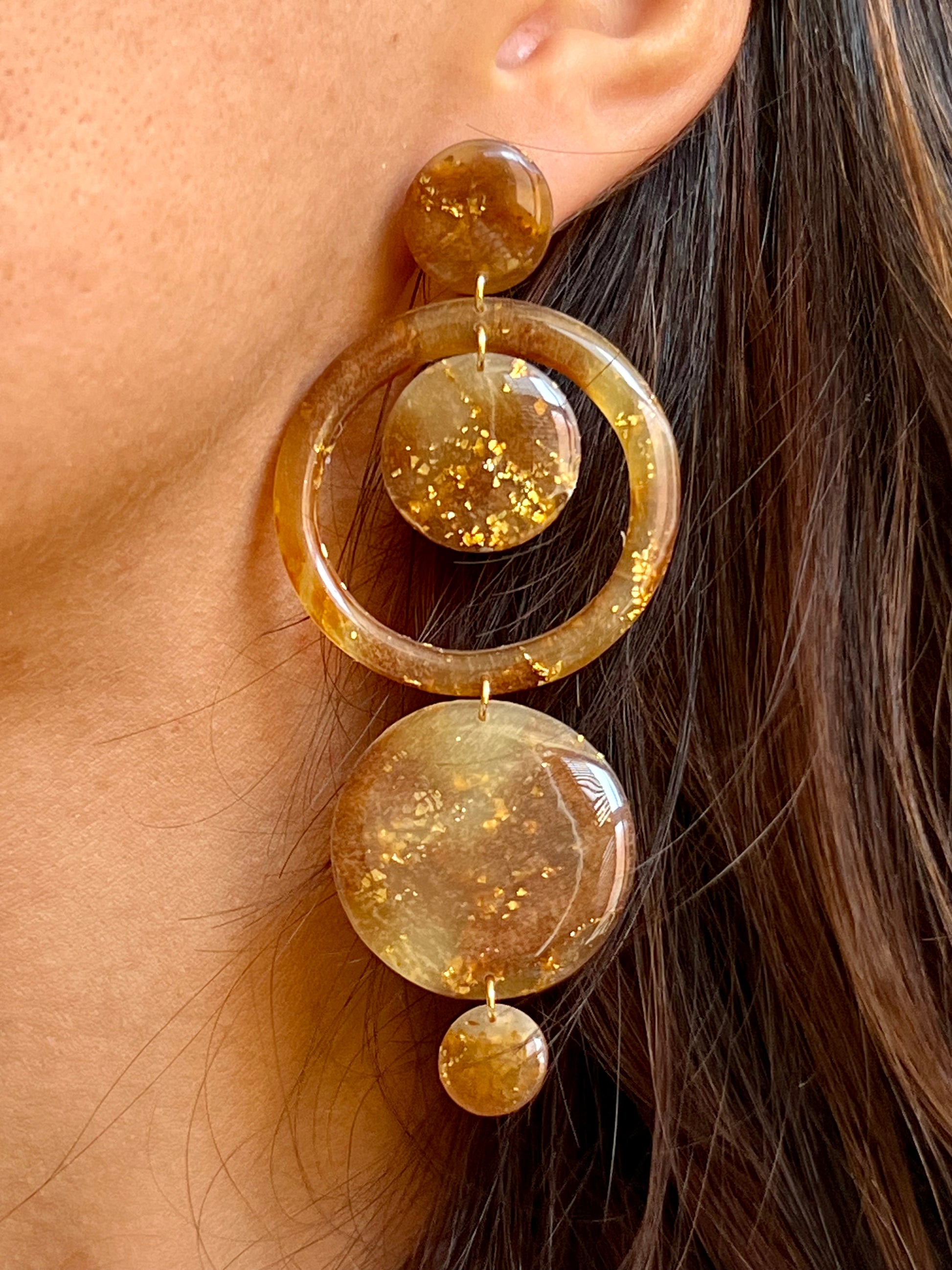 Pendientes hechos a mano de arcilla polimérica, resina UV y cierre de acero inoxidable hipoalergénico.