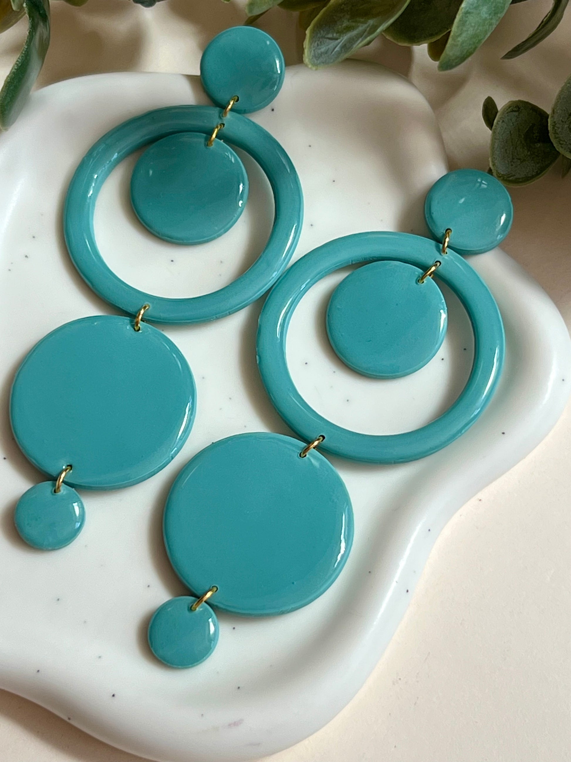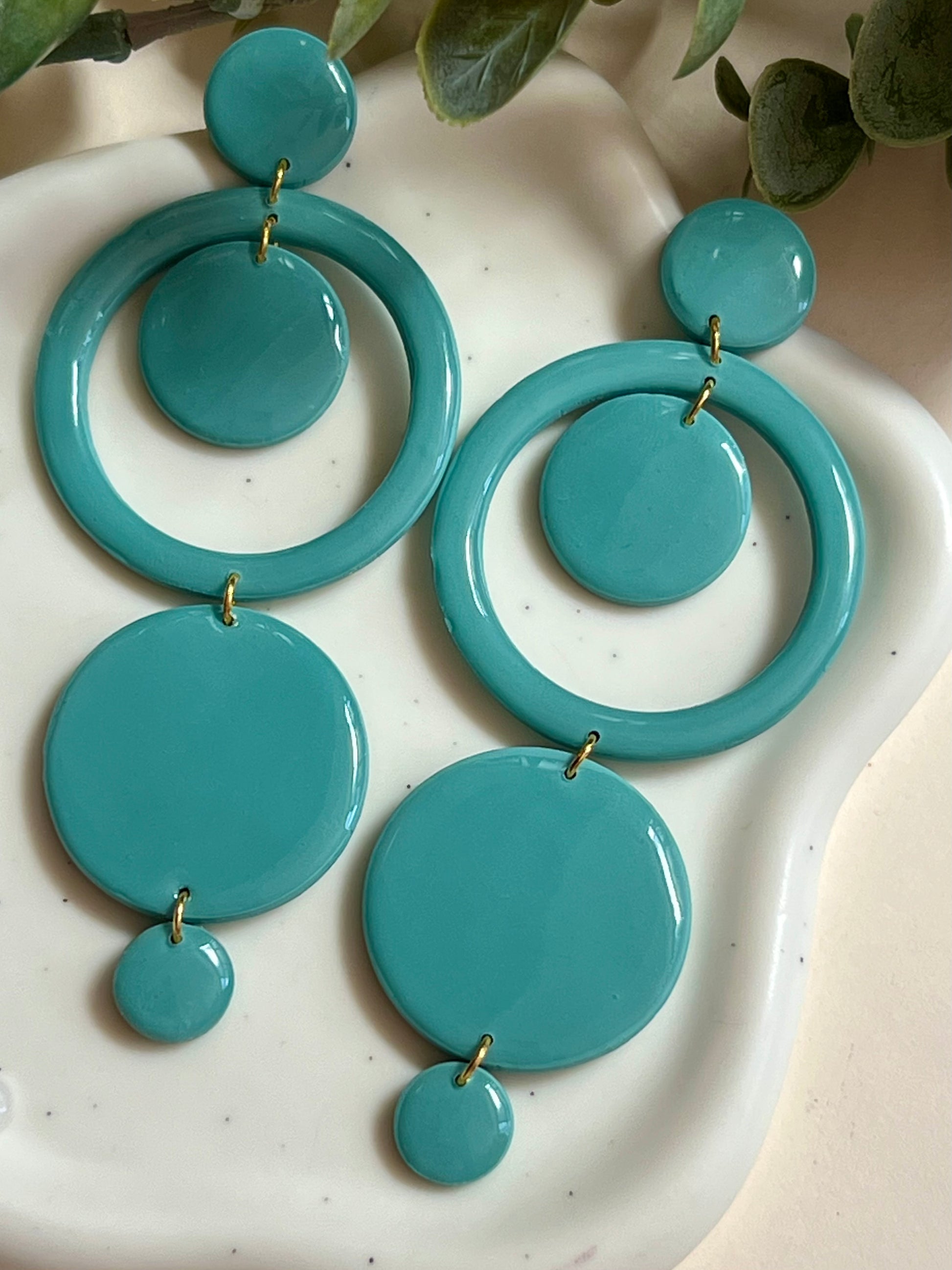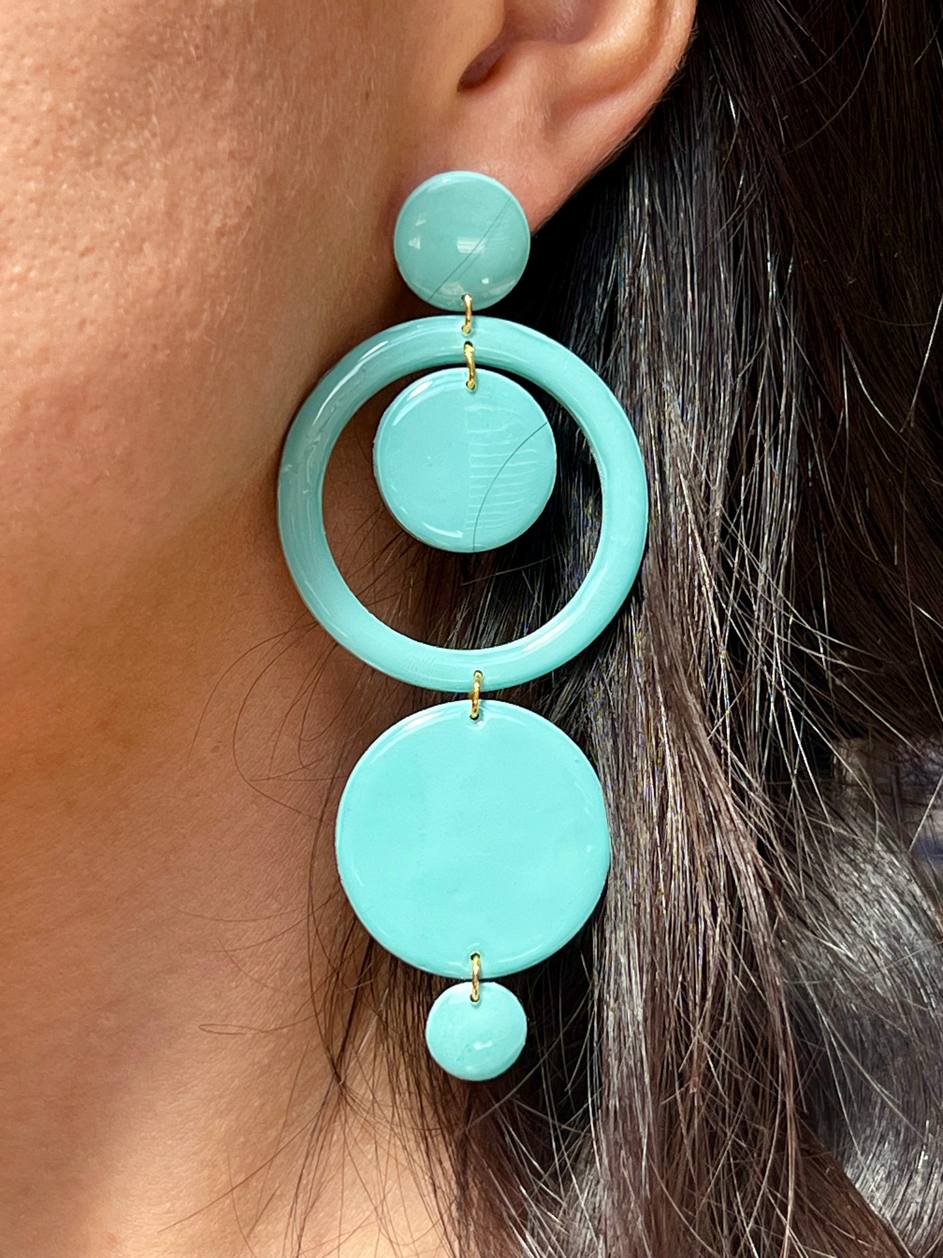 Pendientes hechos a mano de arcilla polimérica, resina UV y cierre de acero inoxidable hipoalergénico.