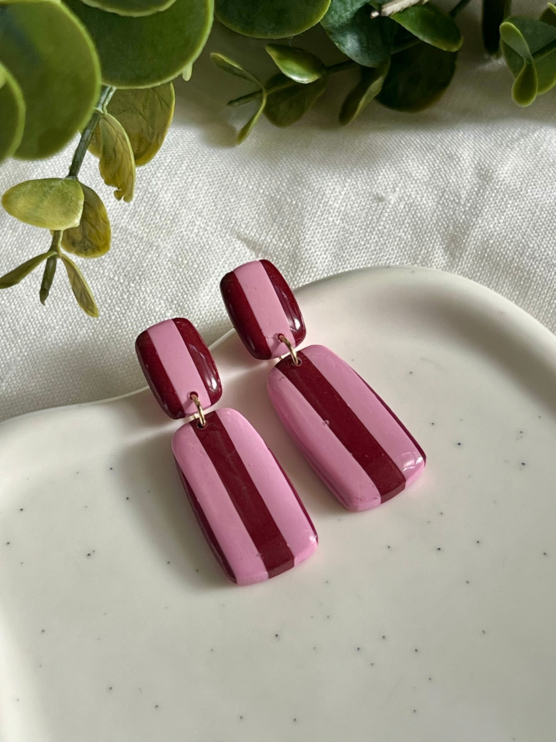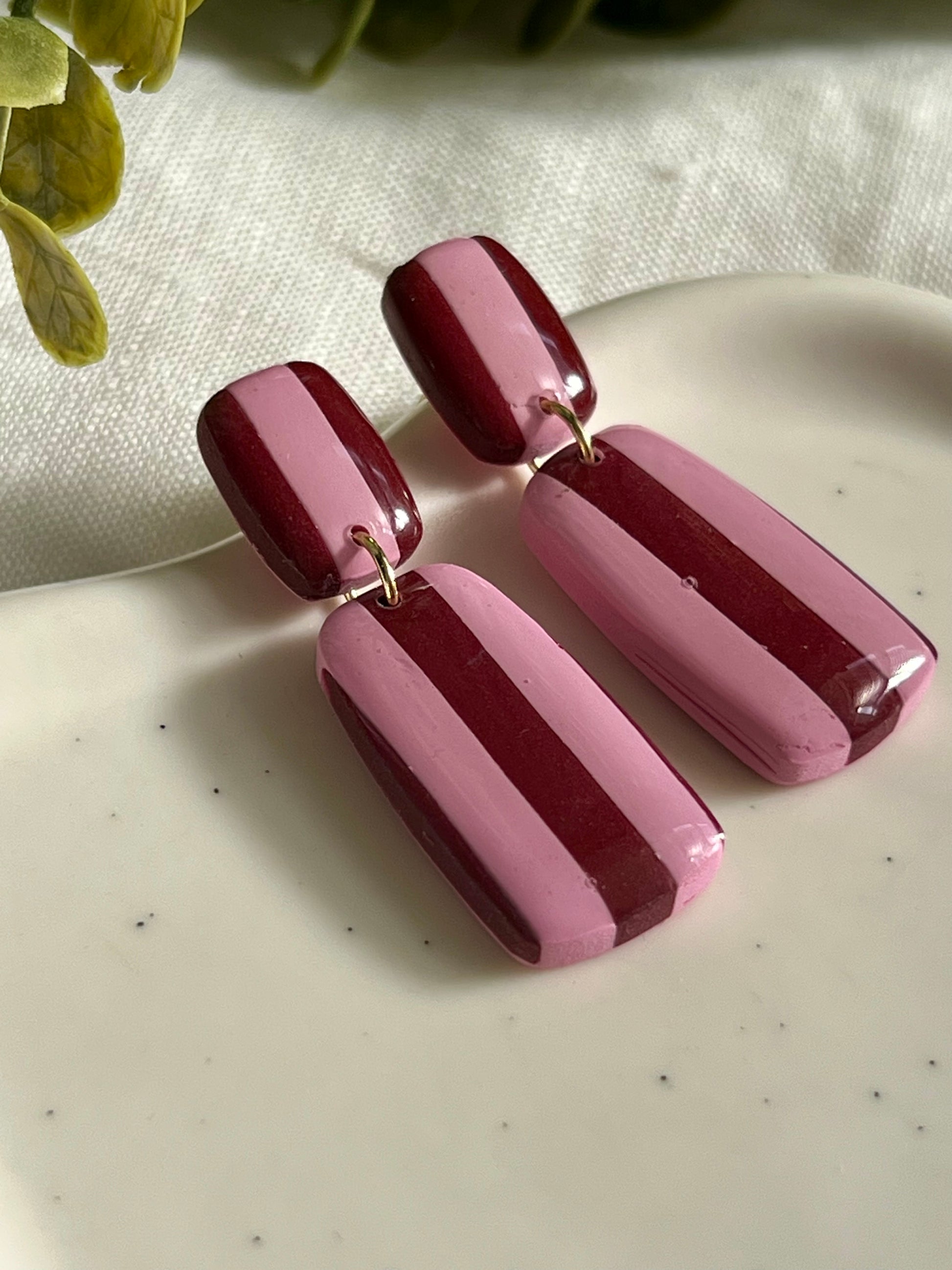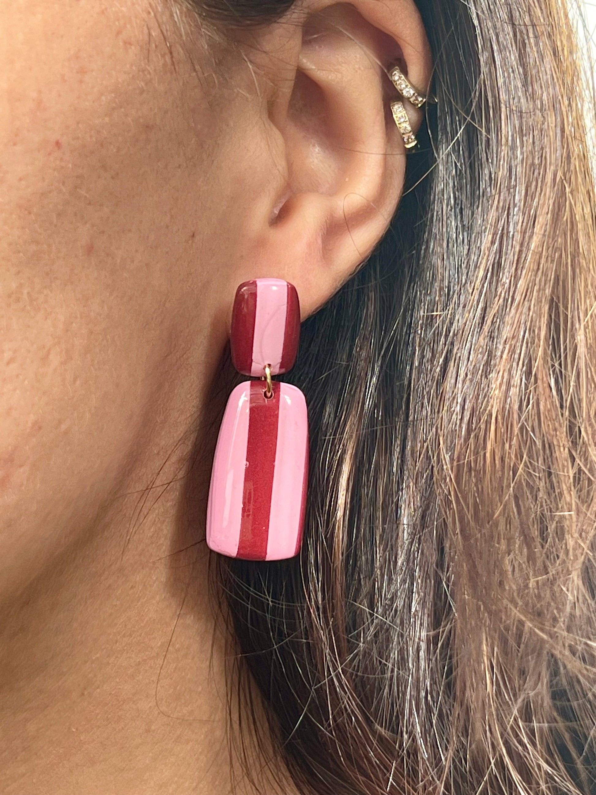 Pendientes hechos a mano de arcilla polimérica, resina UV y acero inoxidable hipoalergénico.