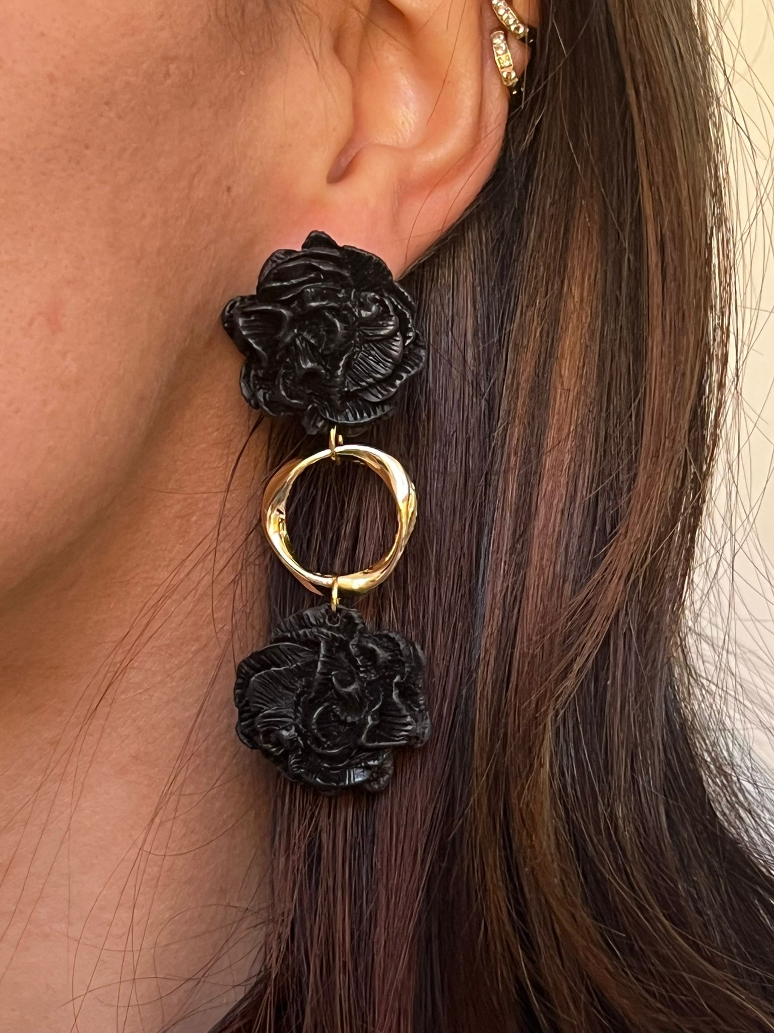 Pendientes hechos a mano de arcilla polimérica y acero inoxidable hipoalergénico.